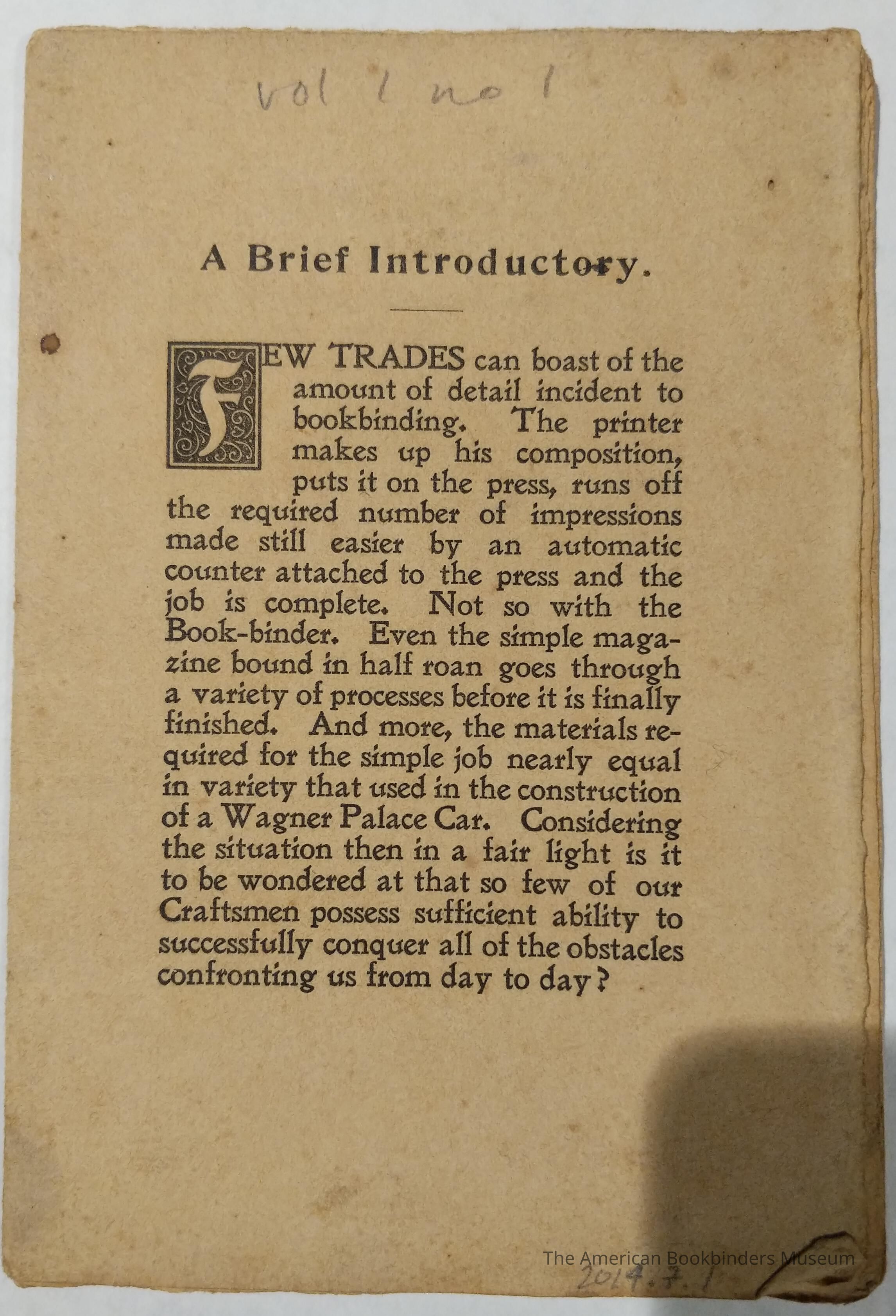 The Whisper: A Magazine of Brief Practical Suggestions for Bookbinders; vol 1 no. 1