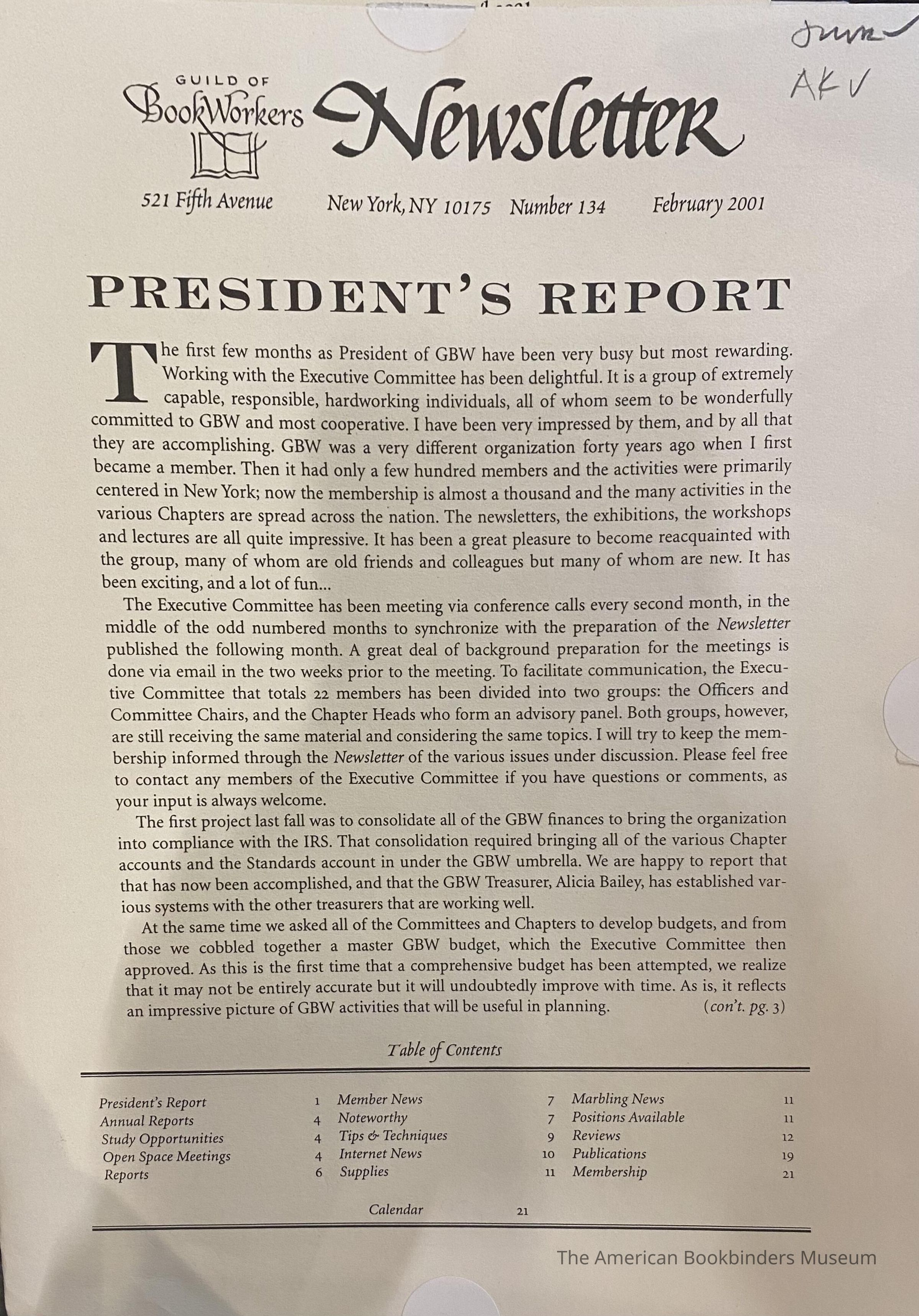 Guild of Book Workers Newsletter ; Number 134 , February 2001Entry/Object ID