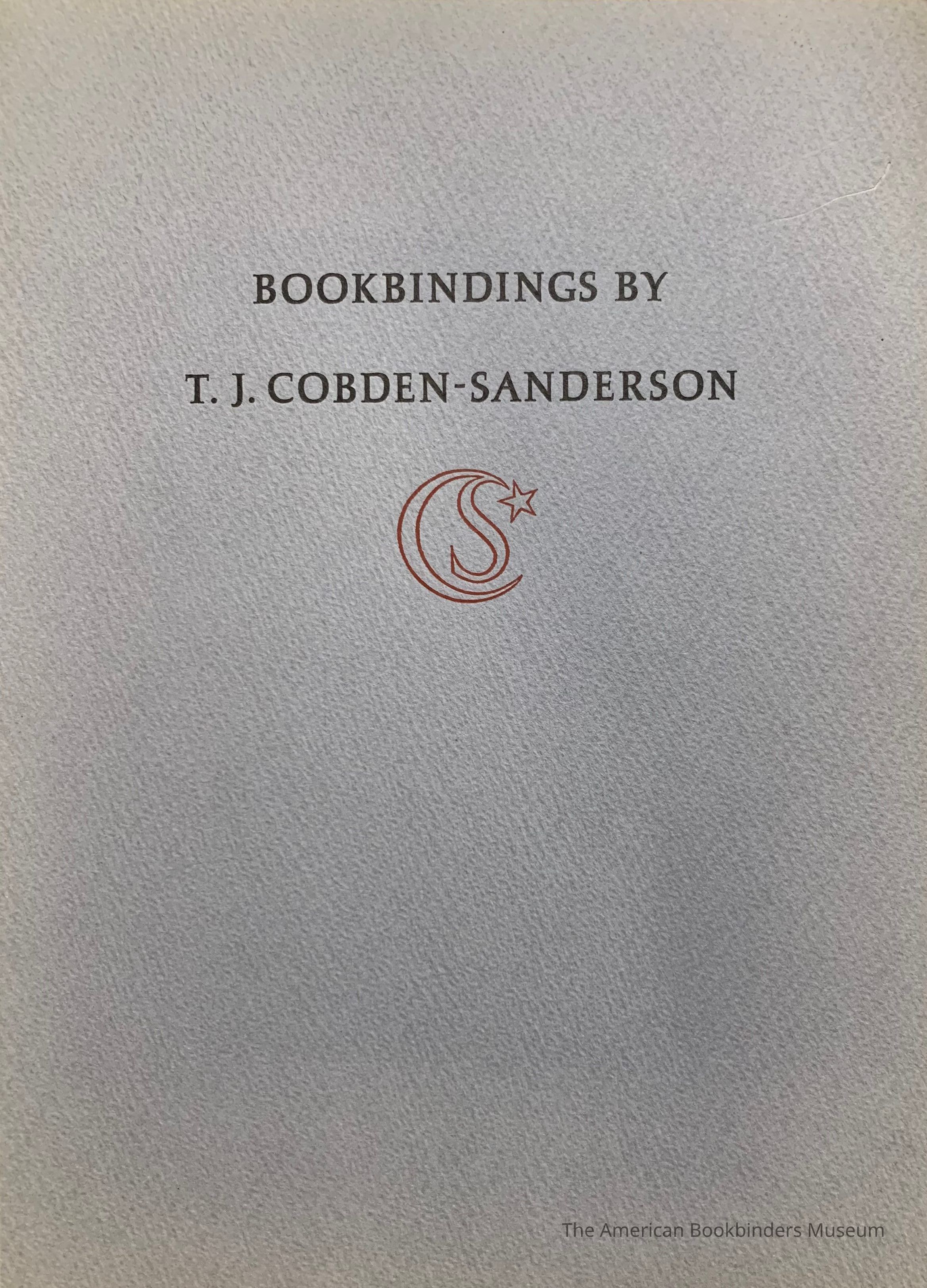 Bookbindings by T.J. Cobden-Sanderson; an exhibition at the Pierpont Morgan Library, September 3-November 4, 1968. / Compiled by Frederick B. Adams, Jr.Entry/Object ID