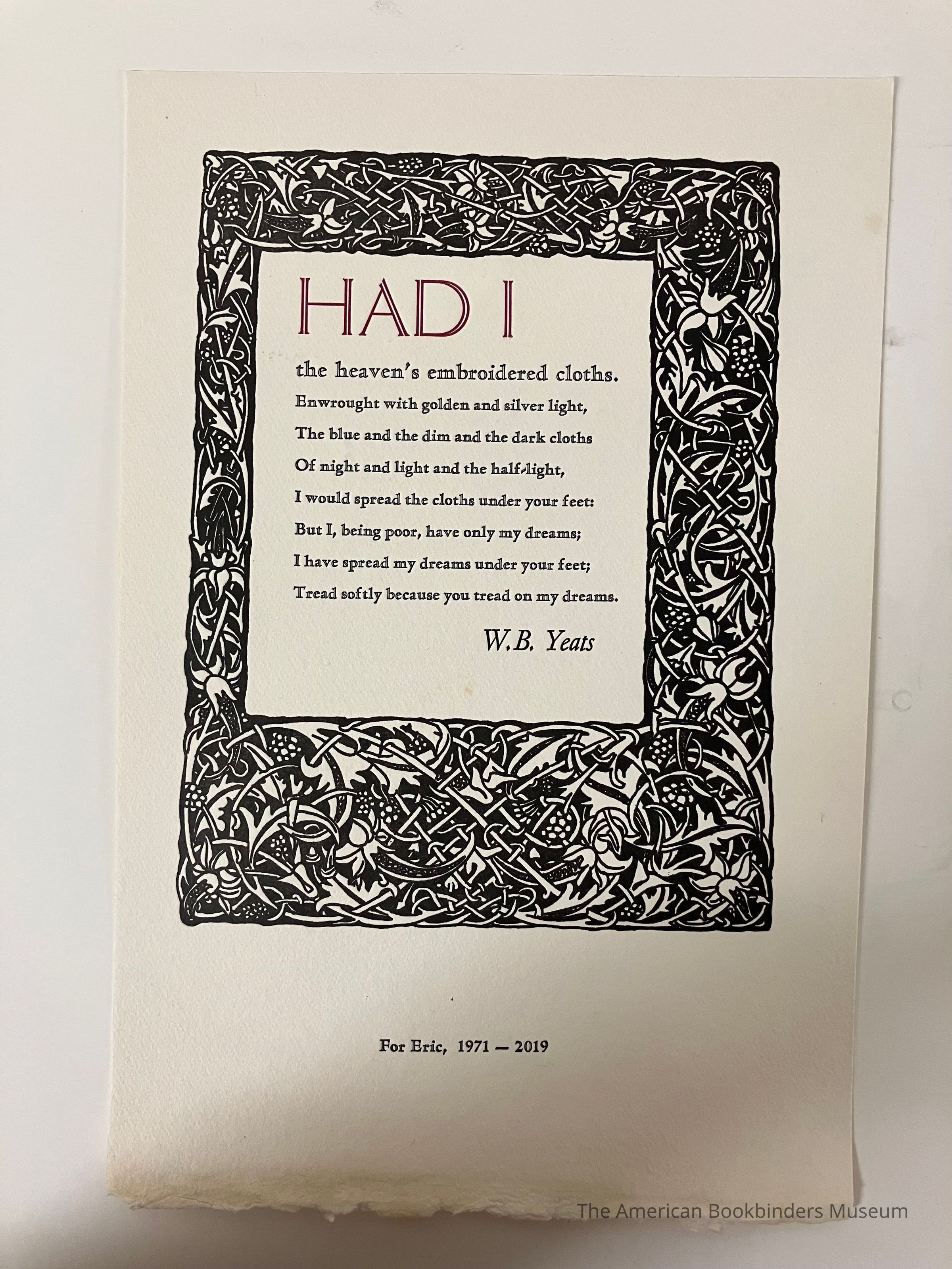 Had I the heaven's embroidered cloths ... / W. B. YeatsEntry/Object ID