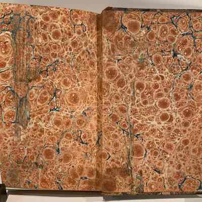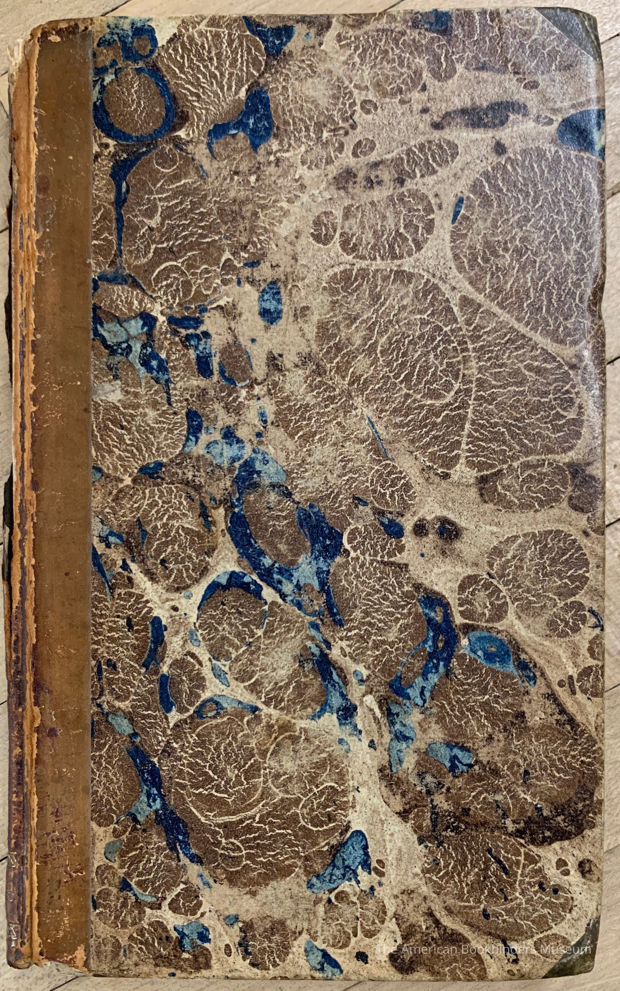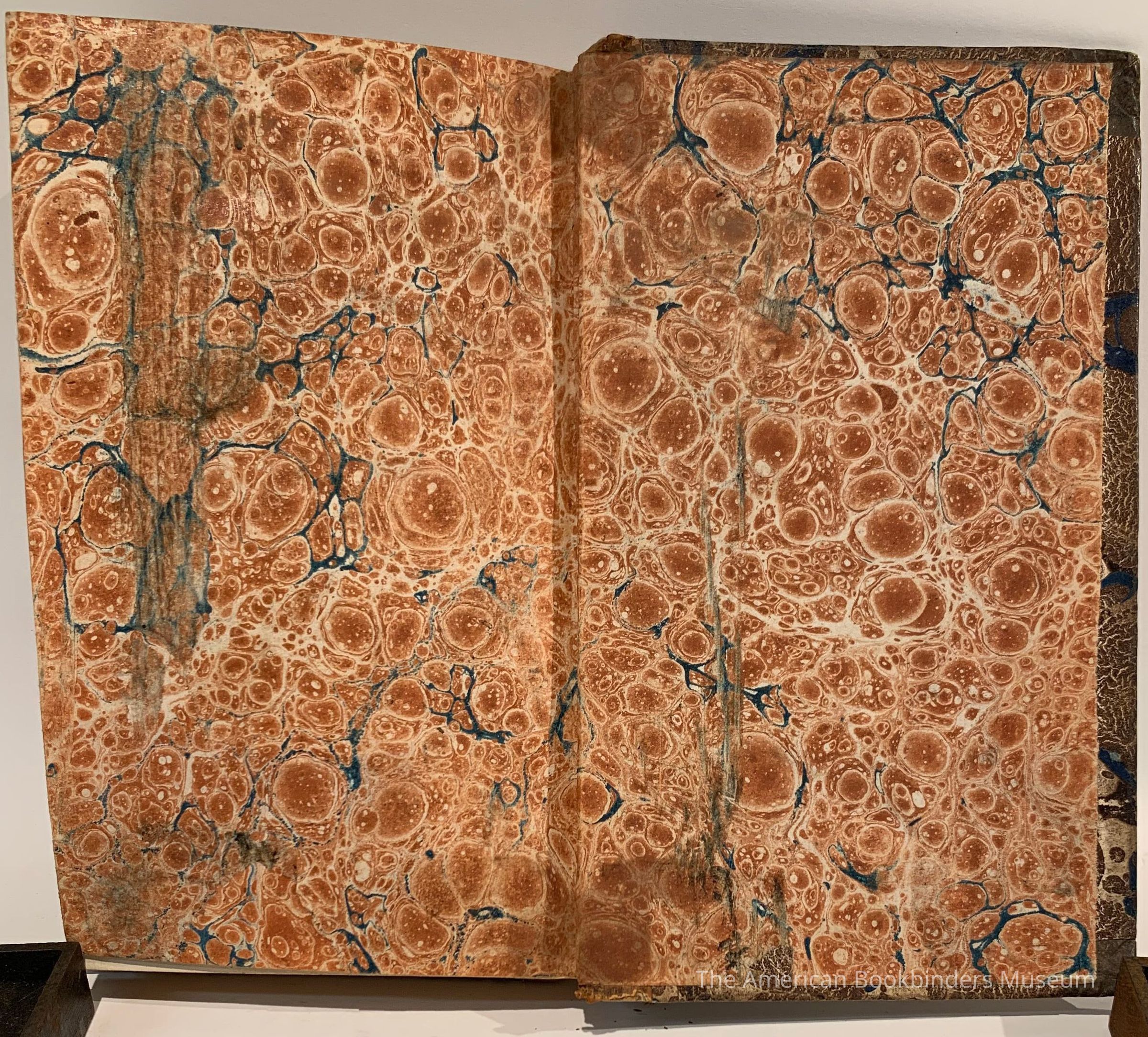 Leather spine and corners, marbled paper boards; gilt spine title; marbled endpapers of a different design.