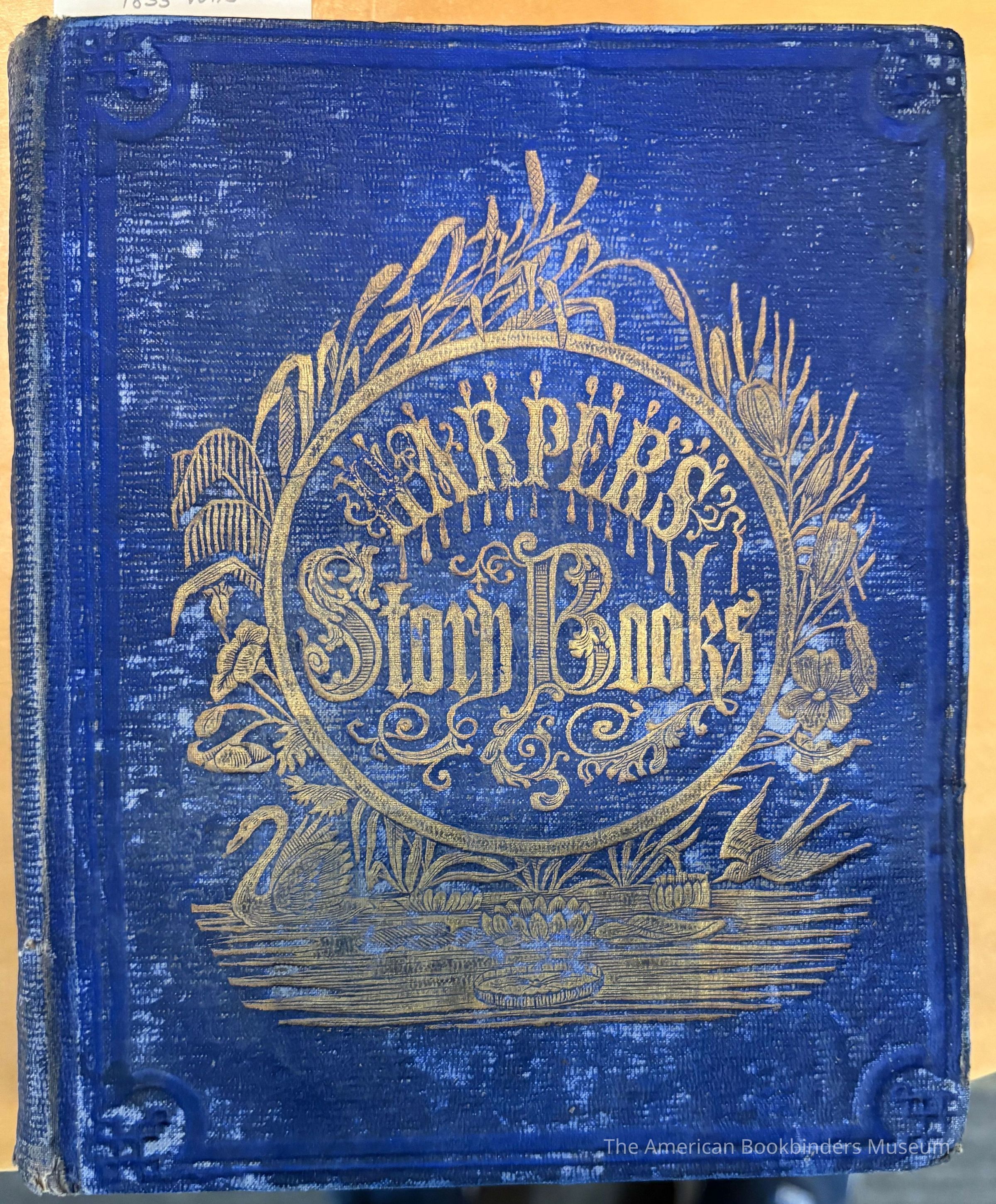 Binding shows signs of moisture damage. Rear fabric is separating from the bookboard, resulting in lessening of emboss texture. Fabric has not torn, but can be moved separately from board., Dark blue publishers' cloth binding with gold emboss on front and spine, blind emboss on rear. Shows significant signs of wear, and covers are slightly warped, indicating moisture damage.