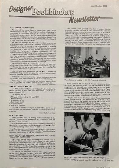 Designer Bookbinders newsletter; No.62; Spring 1988Entry/Object ID