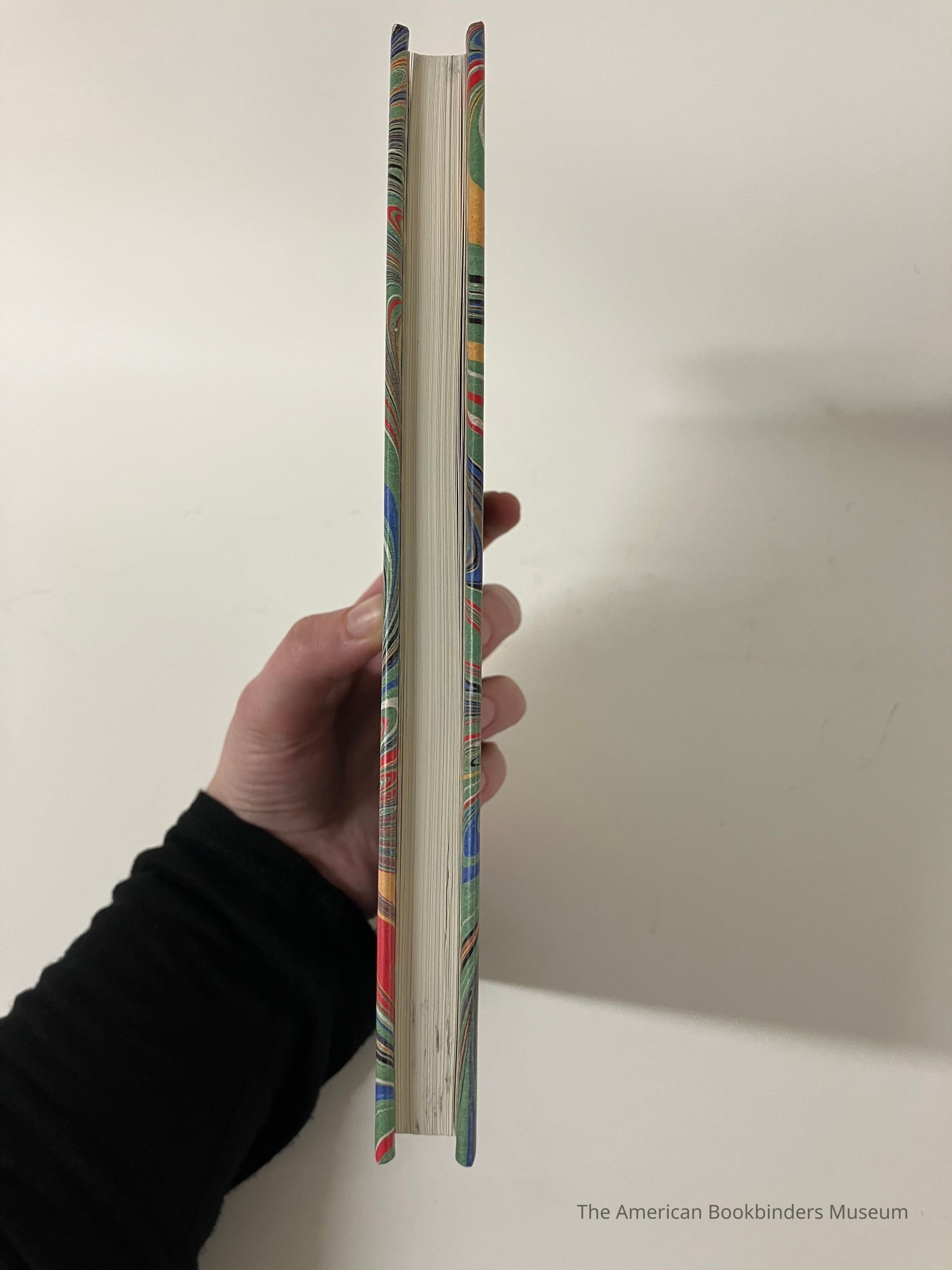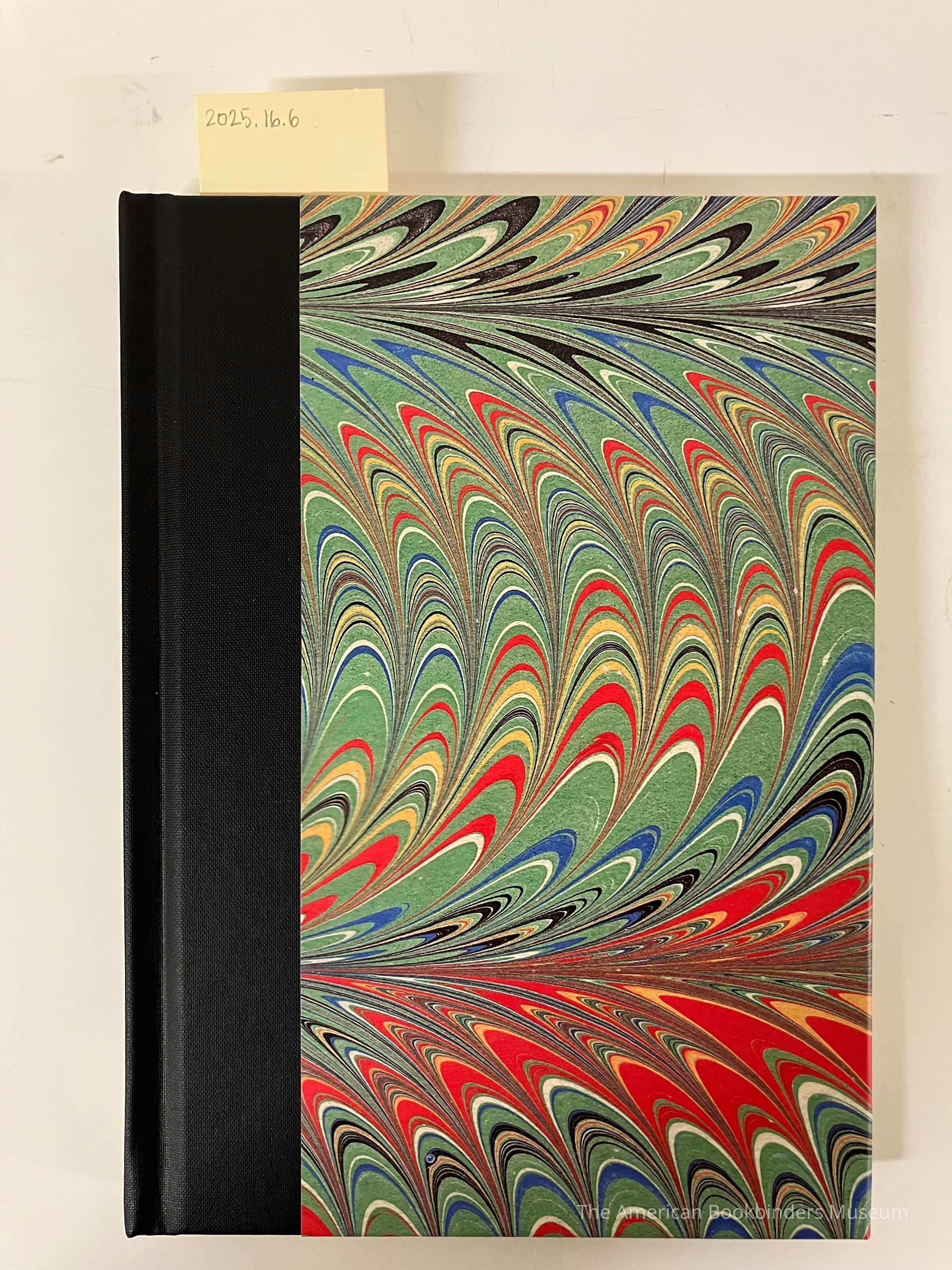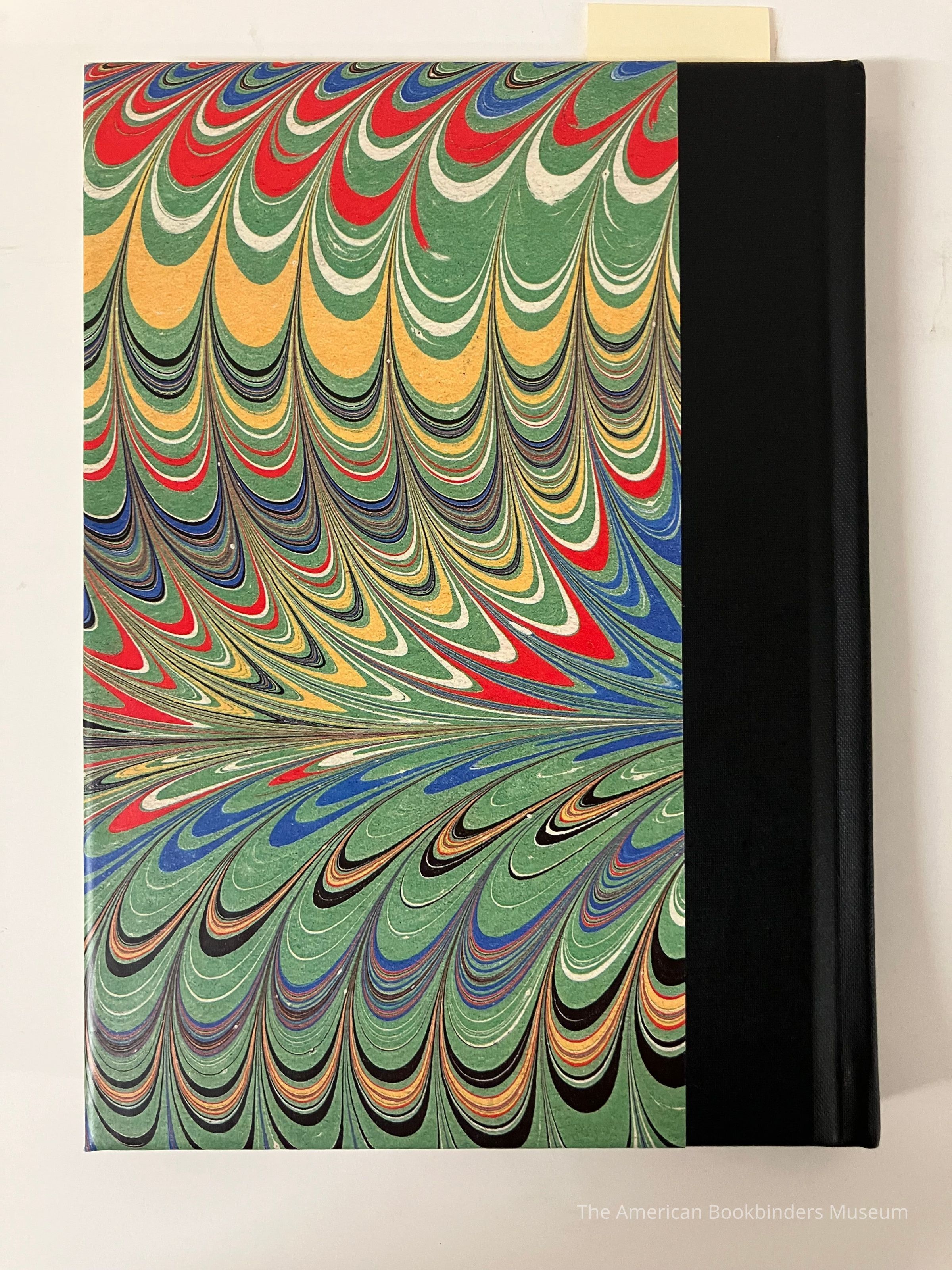 Spine covered in cloth (quarter cloth), boards covers with printed marble paper with tipped-in marbled paper samples.Notes