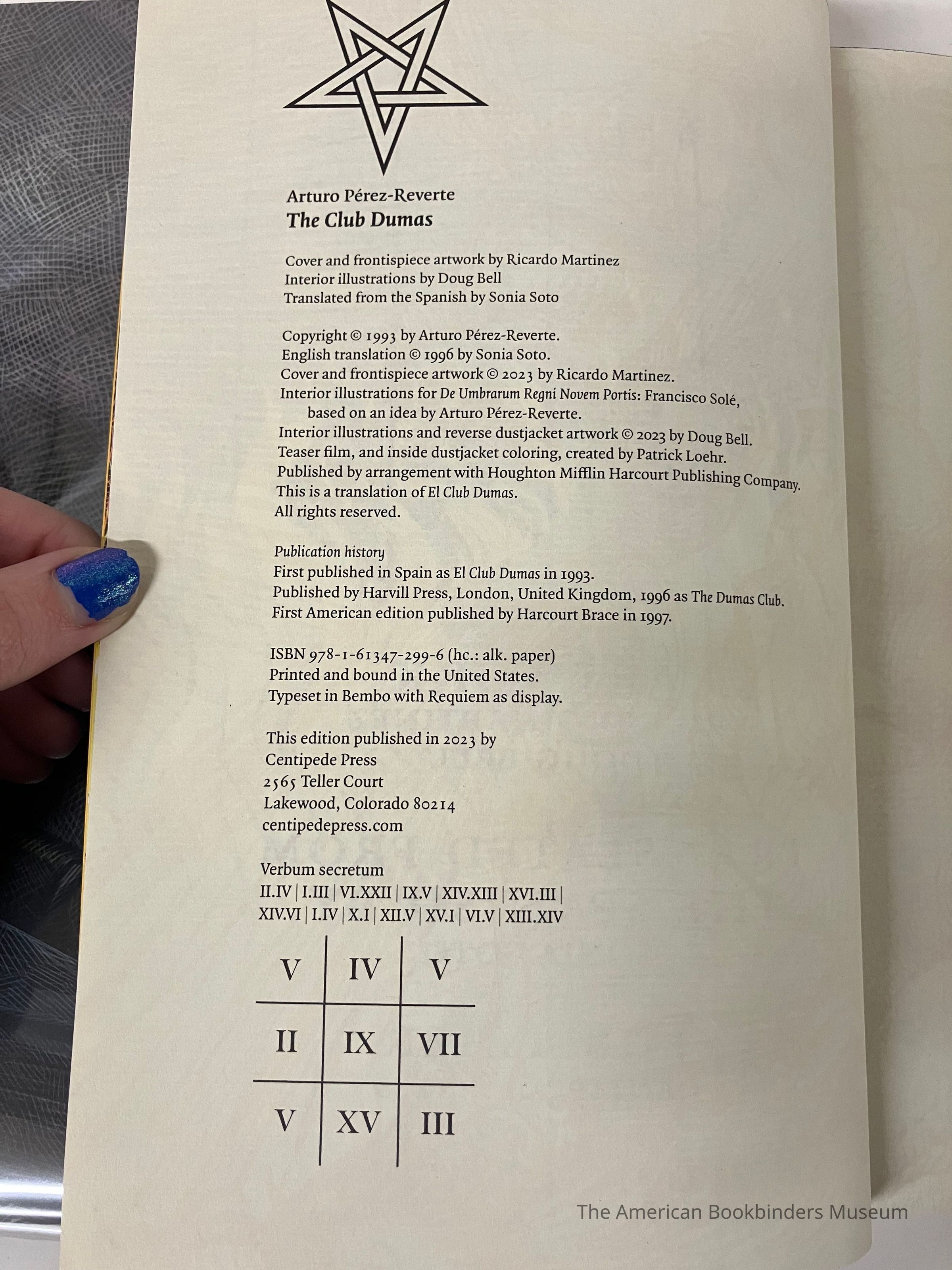 First published in Spain as El Club Dumas in 1993. First American edition published by Harcourt Brace in 1997.