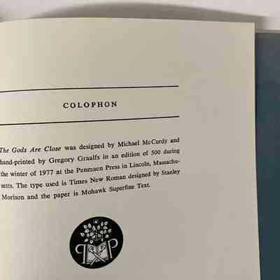 Colophon at back - printed by Graalfs at the Penmaen Press. Designed by Michael McCurdy. Type is Times New Roman and paper is Mohawk Superfine Text.