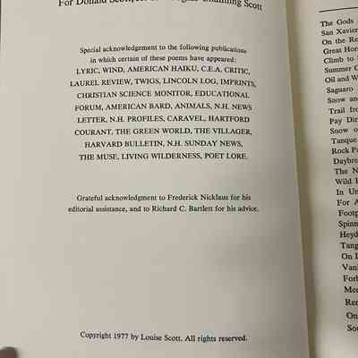 Book of poetry. Clue cloth on the spine with mottled light blue covers. Plastic wrapping isn’t tall enough to fully cover the book. Tucked in the front cover is a pamphlet about the book, with an order form at the back. 69p.Collection