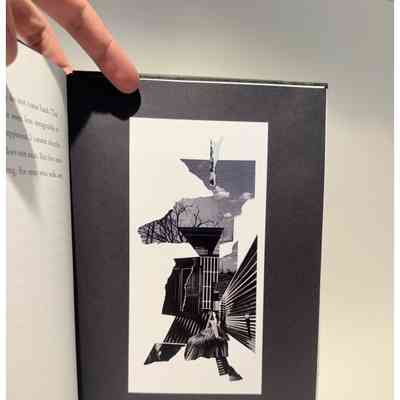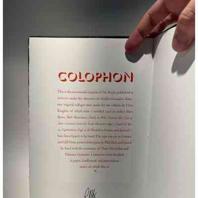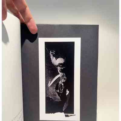 Zerkall - bütten mould-made text papers. Colorplan endpapers, Hand - bound in a three piece Bradel binding using a mirrorfoil tooled cloth spine and monoprint papers, made at the press specially for the edition and each unique, covering the facing boards in a single continuous artwork. Please note: Due to the monoprinting process, covers may (and likely will!) vary significantly from the prototype photos shownBinding Designer