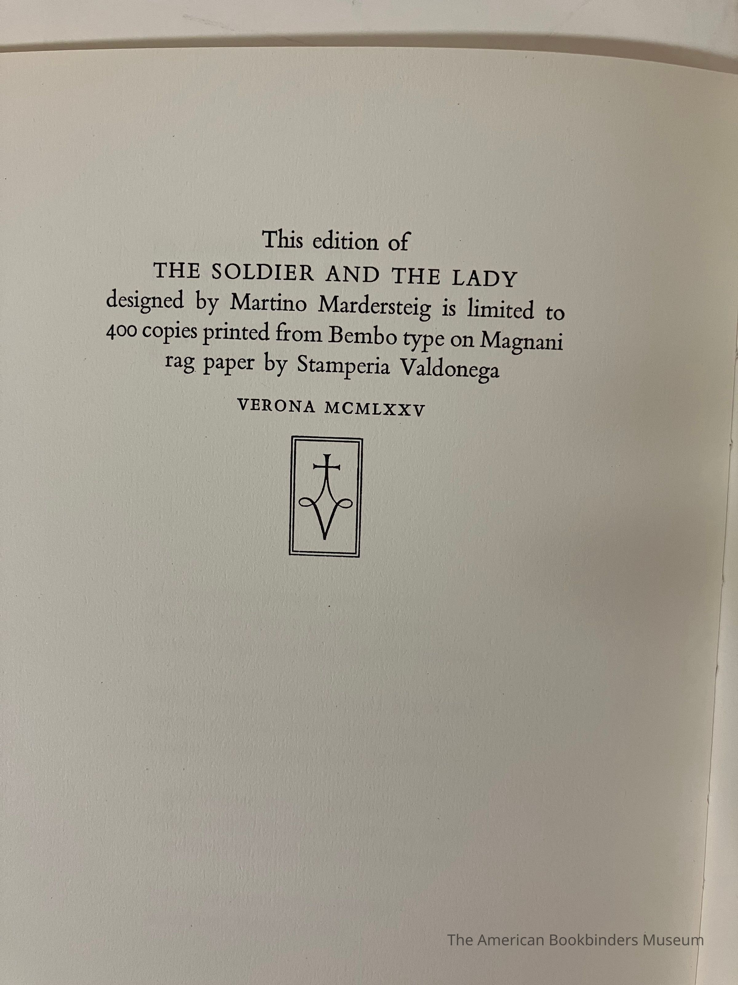 From colophon at back - designed by Martino Mardersteig. Printed from Bembo type on Magnani rag paper.