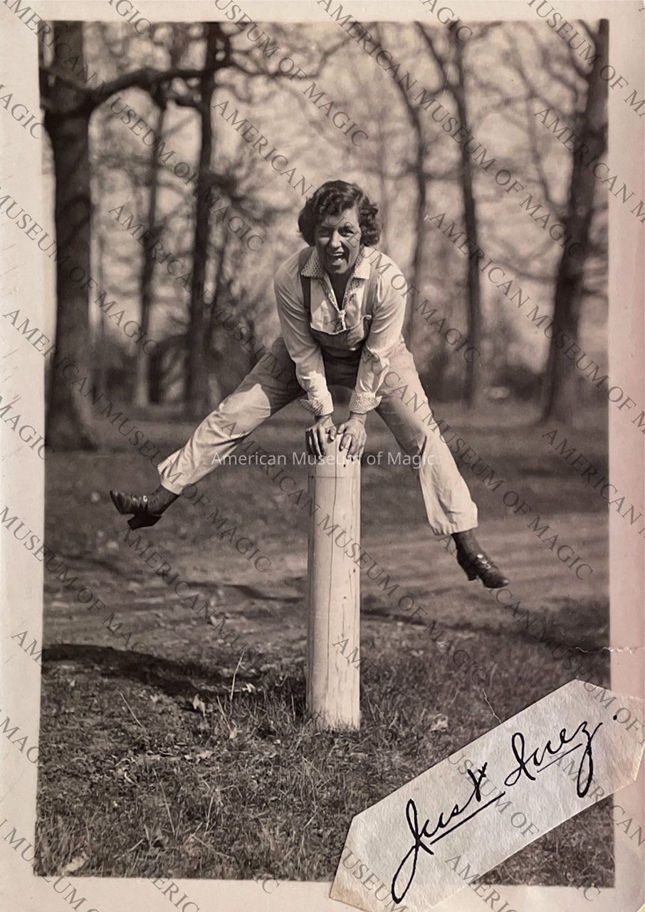Born Inez Nourse in 1899, Inez was a touring musician during the mid-1910's. In 1916, Inez was on tour playing music under the name "Banjo Fiend," when she met Harry Blackstone Sr., who after meeting her hired Inez to play for his magic performance tours. Around 1920 Inez Nourse and Harry Blackstone married. As a married couple, Inez contributed to Blackstone's shows immensely, taking part in several elements of Blackstone's performances, from assisting Blackstone on stage to stage production, set design, costume design, and management. Inez and Harry divorced around 1930. In 1933, Inez married Robert Kitchen.