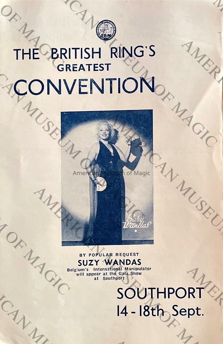 A program showcasing Suzy Wandas performing at the British Ring Convention in Southport during 1952.Use