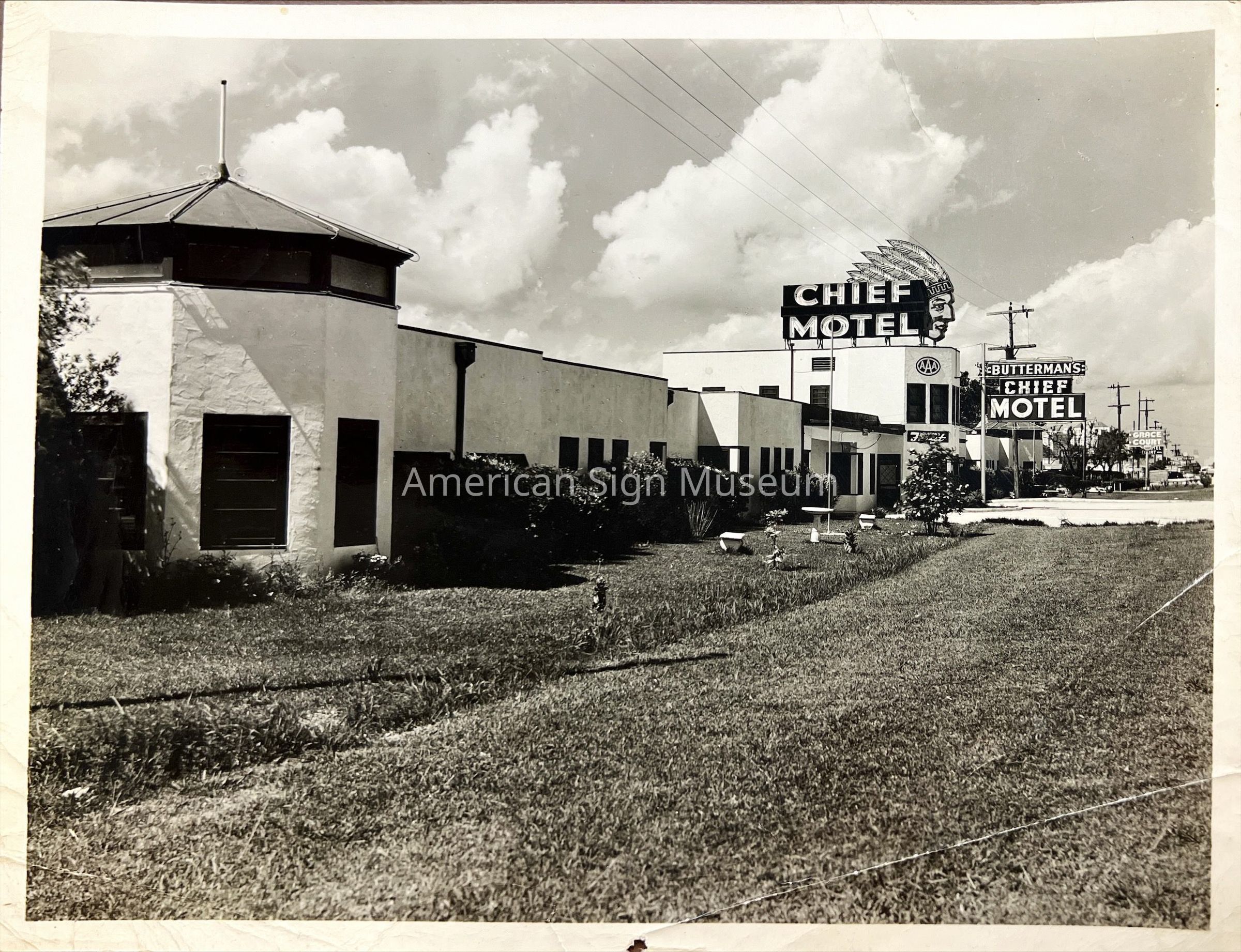 photograph of 1950s neon sign - Butterman's Chief Motel