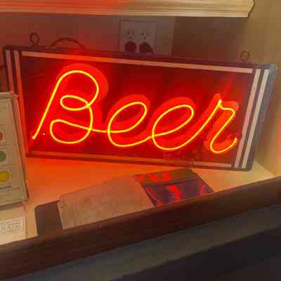 This early neon sign that reads, "Beer," is single-faced ripple tin and was made for counter-top or hanging.Collection