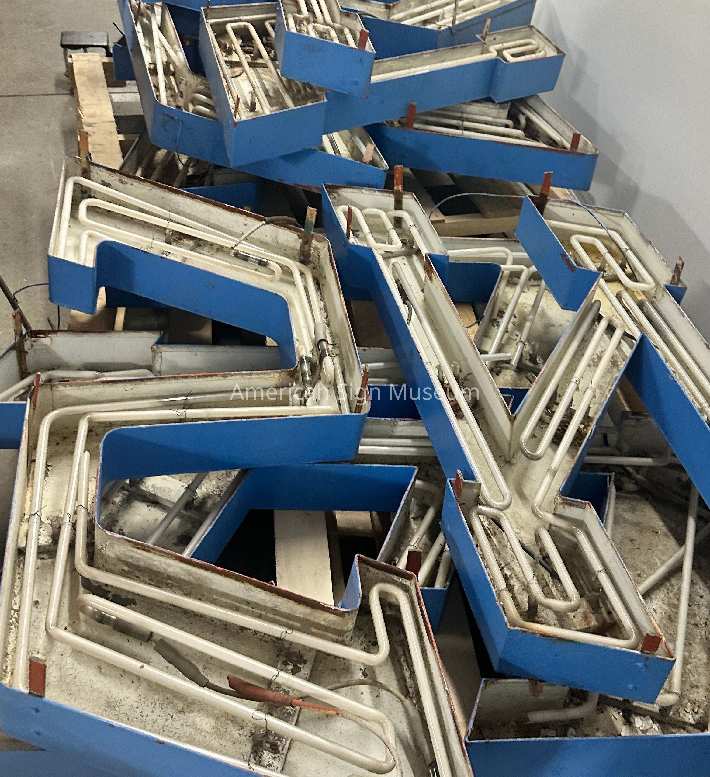 Set of single-faced, reverse channel, sheetmetal letters. These letters were backlit with neon and mounted approximately 4 inches of the wall.Collection