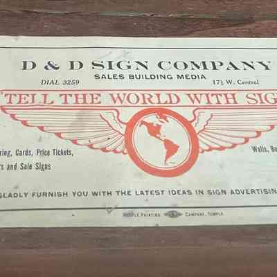 D&D Sign Company blotter (with "Tell the World with Signs" logo). Two-color on blue stock.Collection