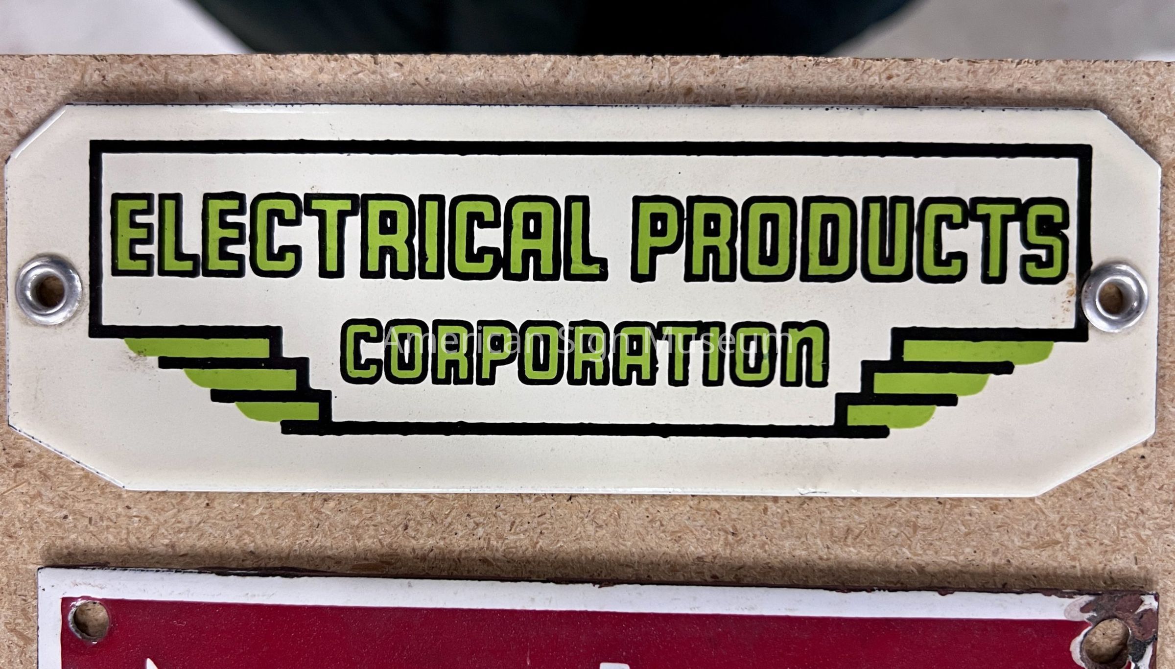 "Electrical Products Corporation" porcelain enamel sign tag has two grommets for mounting.Collection