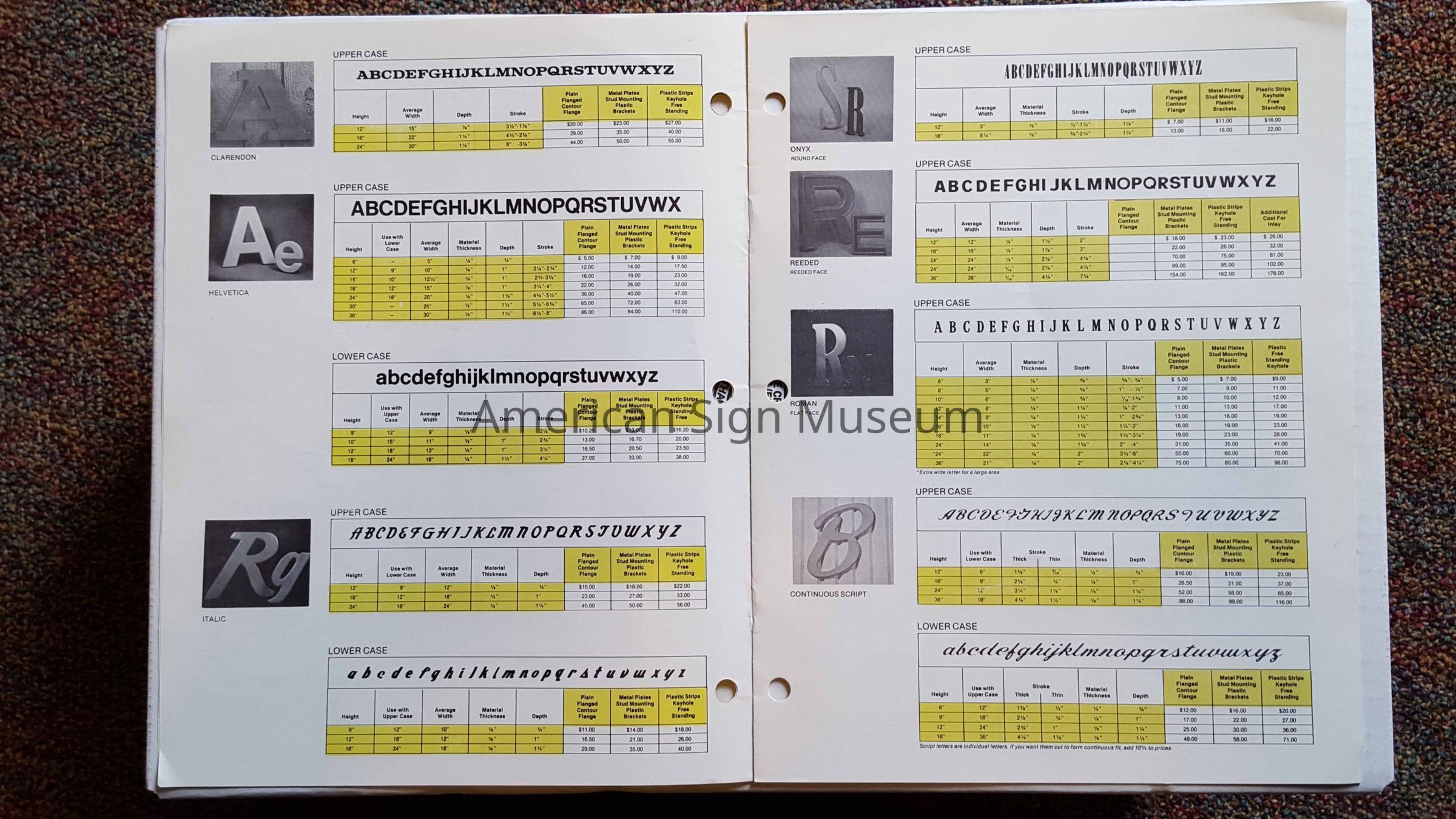 Catalogue for quick reference, pricing, and guide to components. Printed in color.