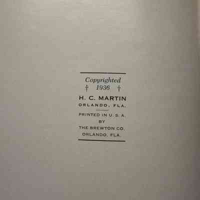 A staple bound book made by H.C. Martin. A blue and orange cover with black and white images and text inside.Collection