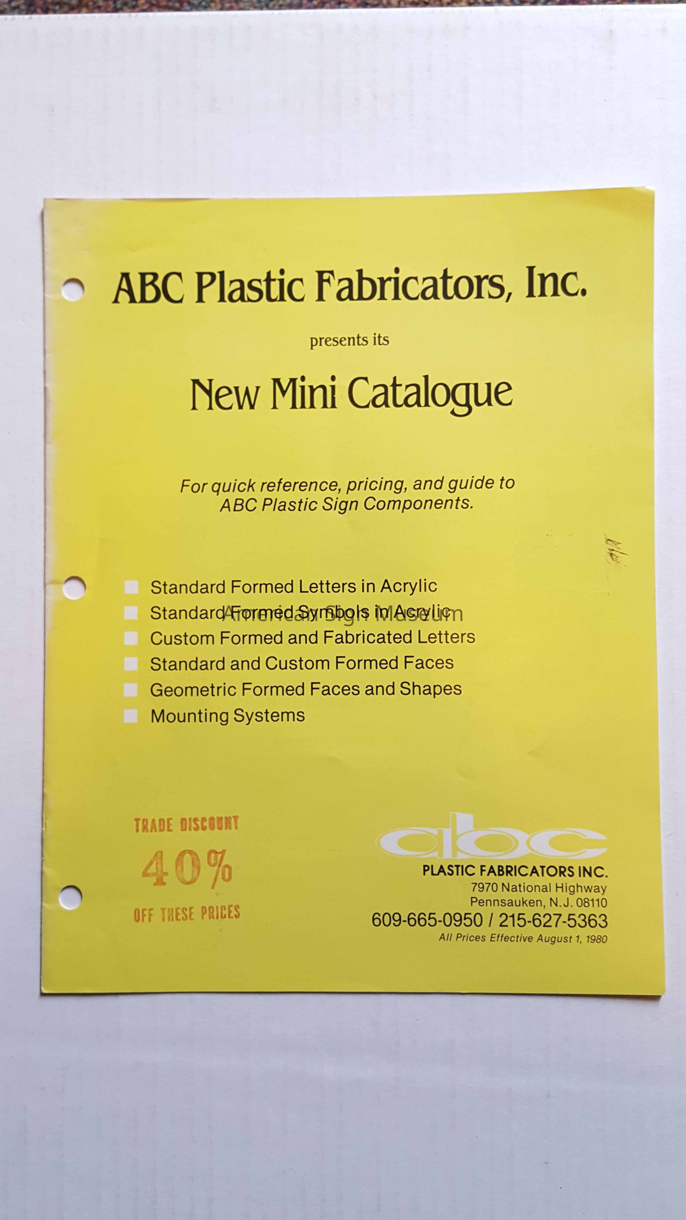 ABC Plastic Fabricator's Inc. New Mini CatalogueEntry/Object ID