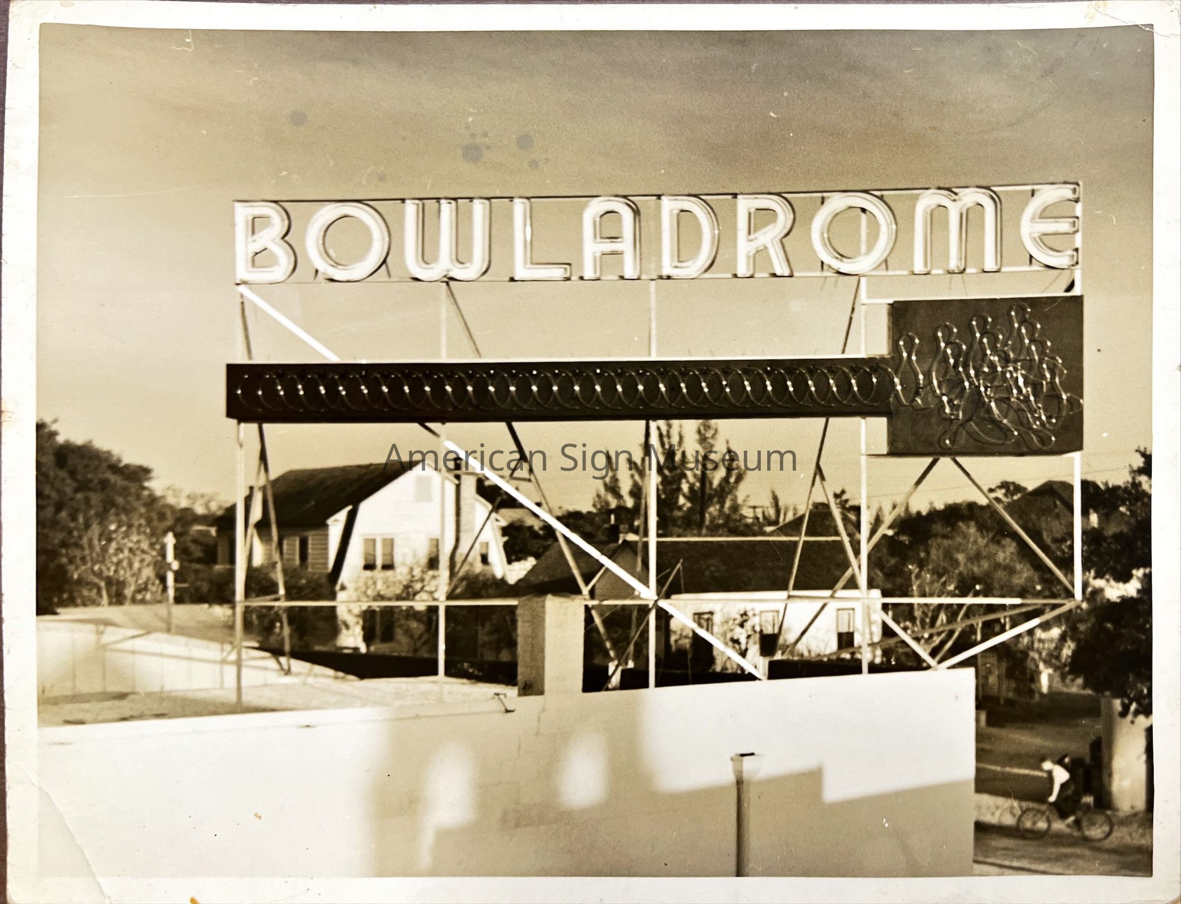 B&W photograph of 1950s neon sign - Bowladrome.