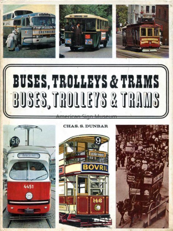 Buses, Trolleys, and Trams by Chas. S. Dunbar, devised and designed by Nicholas Maddren. Published by The Hamlyn Publishing Group Ltd., Feltham, England: 1968 (2nd printing).Hardbound; Color and B&W illustrations; 139 pagesCollection