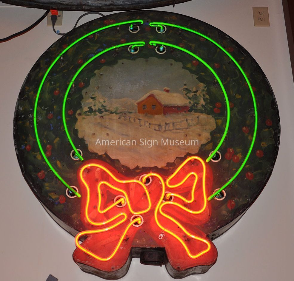 Wreath was fabricated by Claude Neon Russell to display on its own shop during the Christmas season.Collection