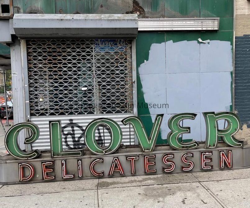 This is a wrap-around style neon sign meant to be displayed on the exterior corner so it would be eye-catching from around the corner and down different avenues. It was for Clover Delicatessen which opened in 1948 located at 621 2nd Avenue on the southwest corner of East 34th Street in the Kips Bay and Murray Hill neighborhoods of Manhattan, NY. Clover Deli was a third generation family business run by the Cuttita Family for 72 years before announcing their permanent closure in 2020.