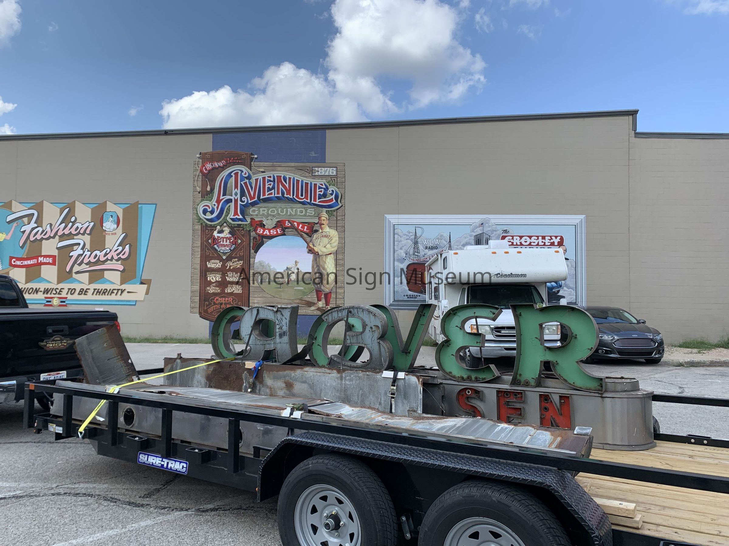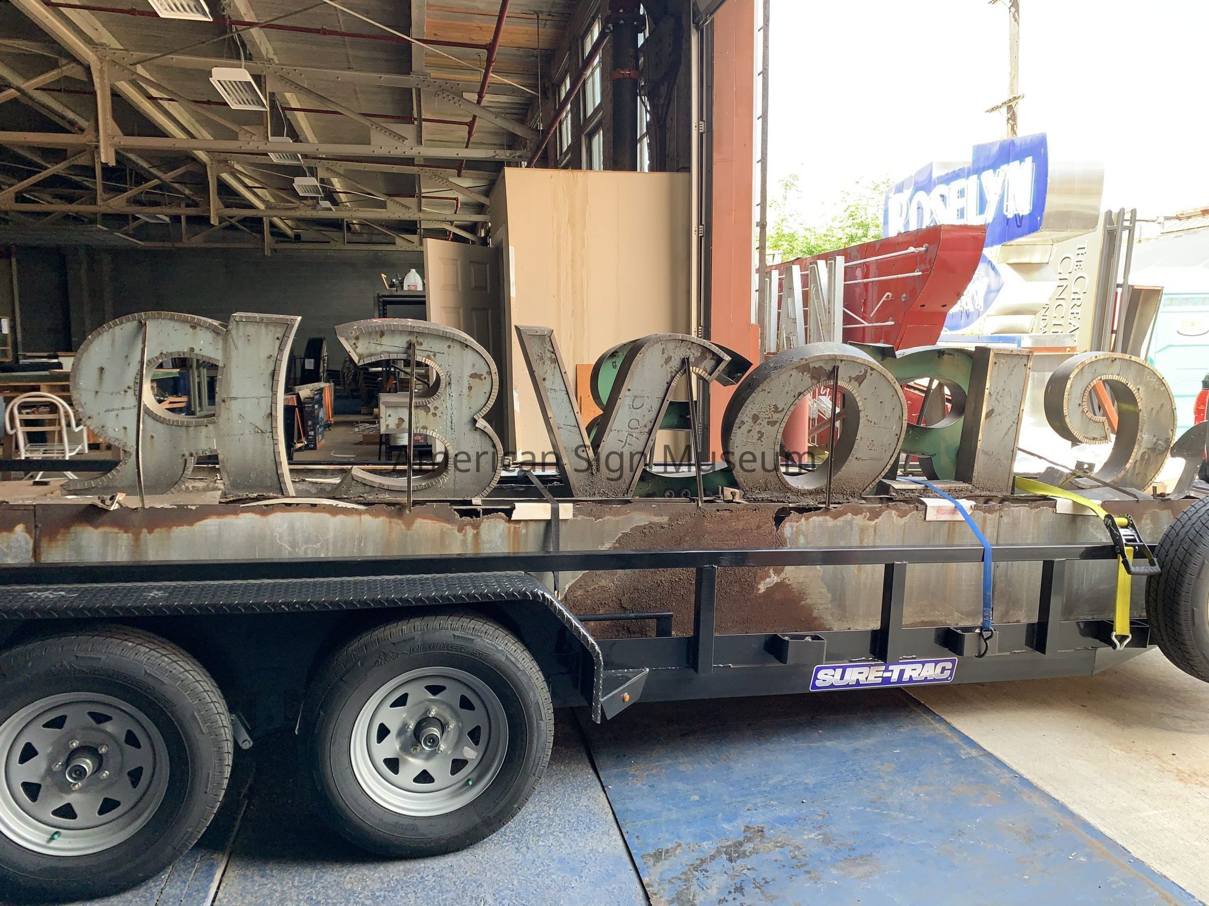 The sign is typical 1950s New York construction: neon-illuminated, open channel stainless steel letters on a stainless steel raceway. It’s a look you see on many drug stores and liquor stores, for example, throughout the five boroughs. But it did have some special qualities. First, the letters were faced with porcelain enamel—a nice touch. Secondly, the sign wrapped the corner which made it more interesting than the usual fascia (building-mounted) sign.Collection