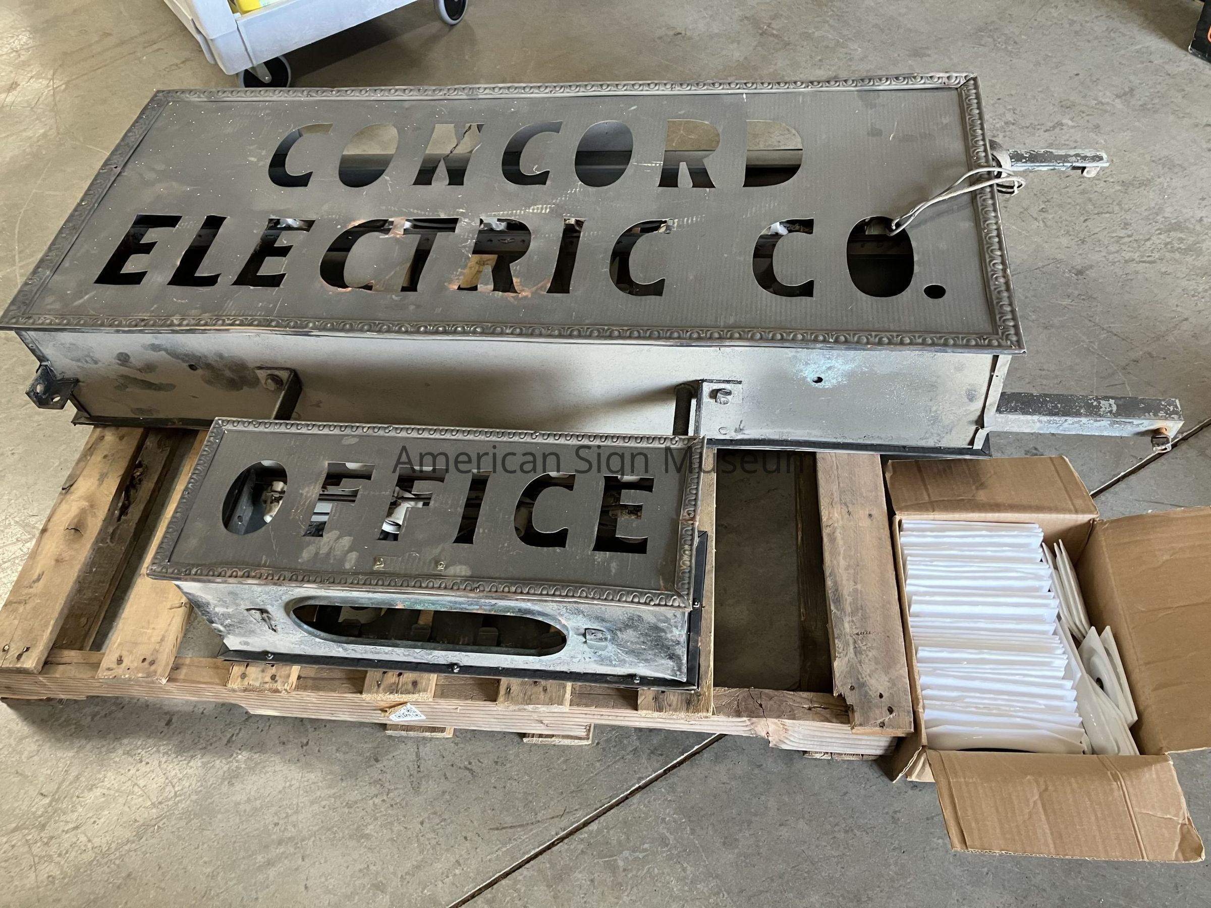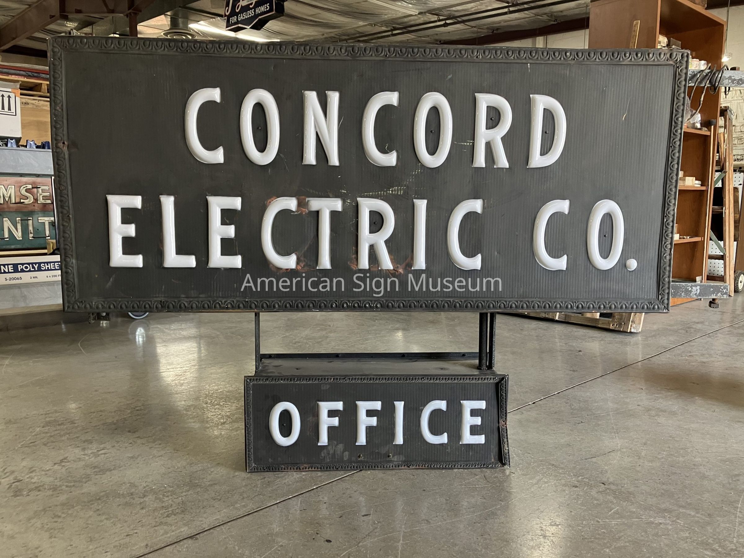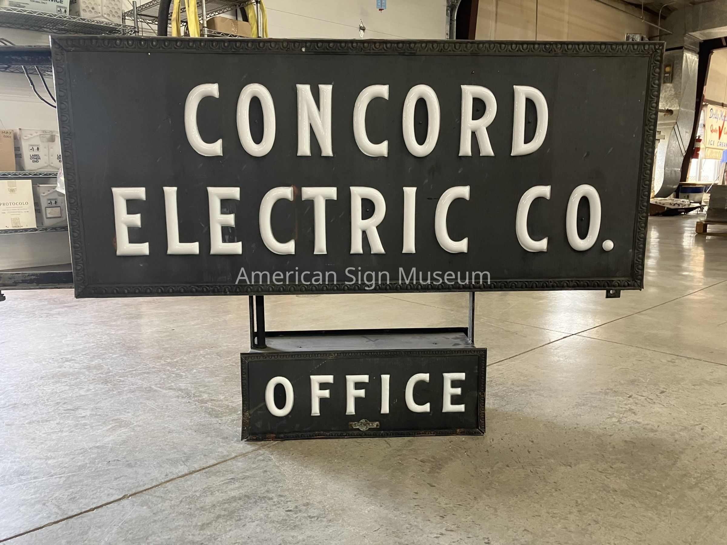 Double-faced opal glass sign for Concord Electric.