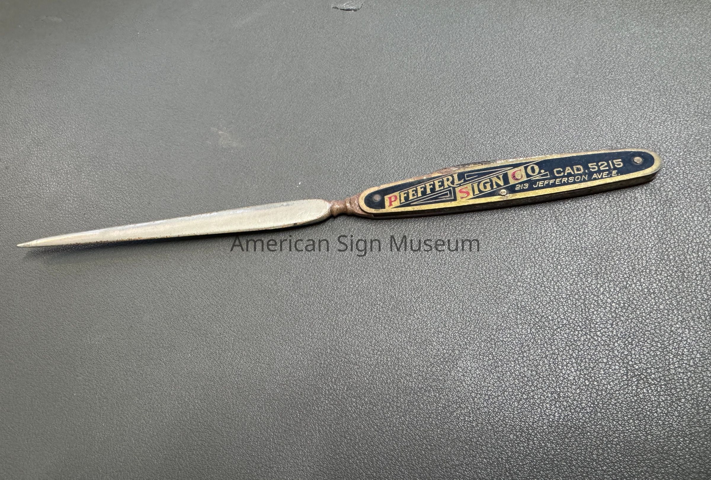 A letter opener that advertises the Pfefferl Sign CompanyCollection