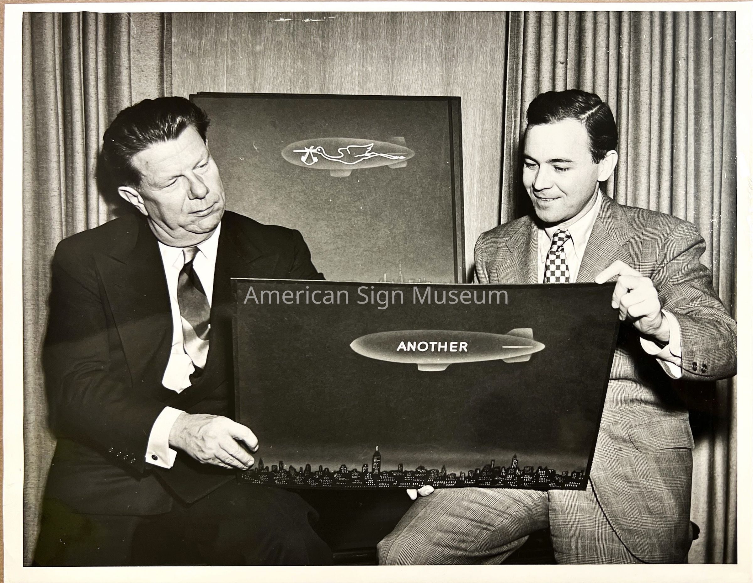 Douglas Leigh with Flamingo Airship Sketch - PhotographEntry/Object ID