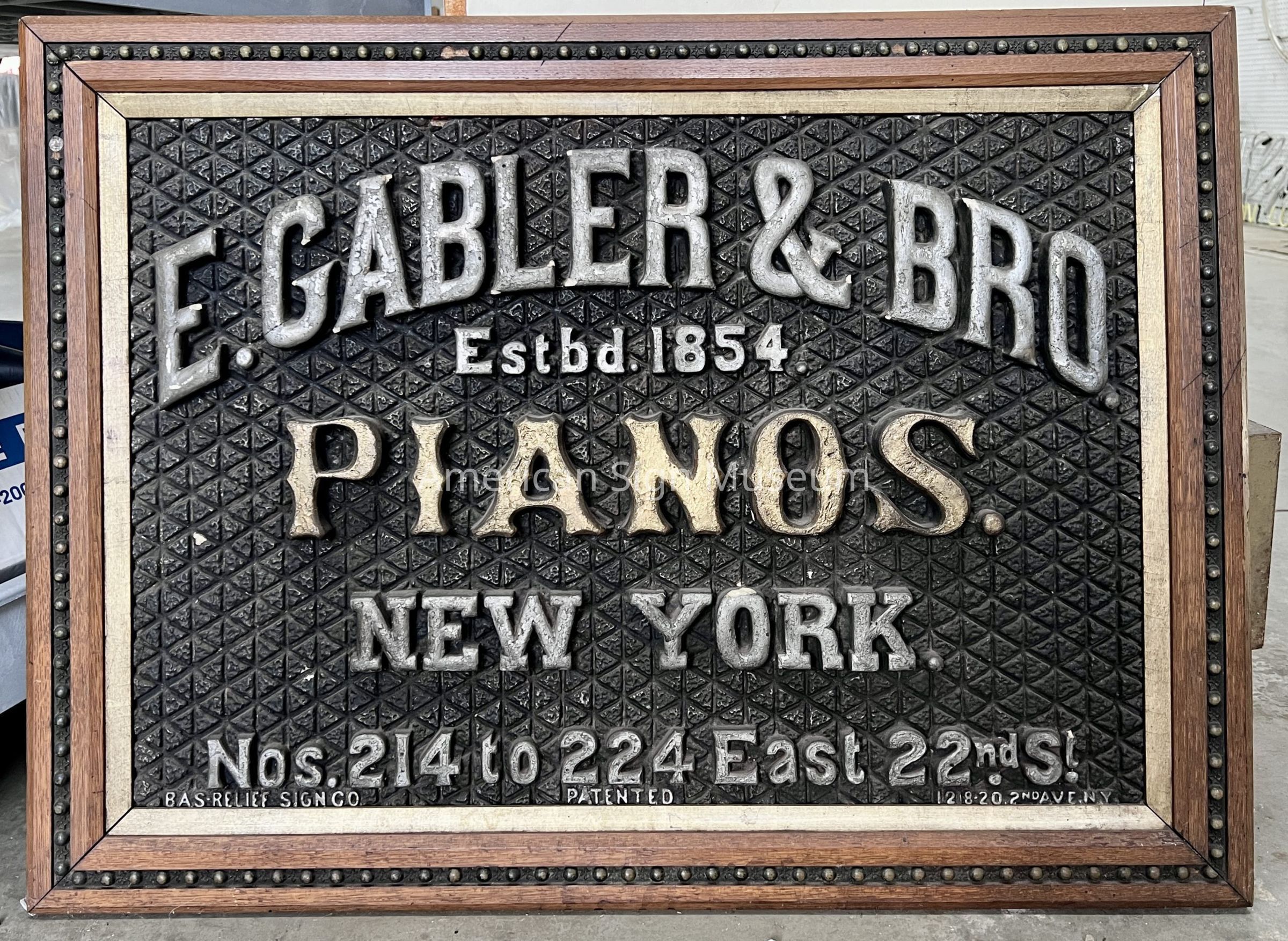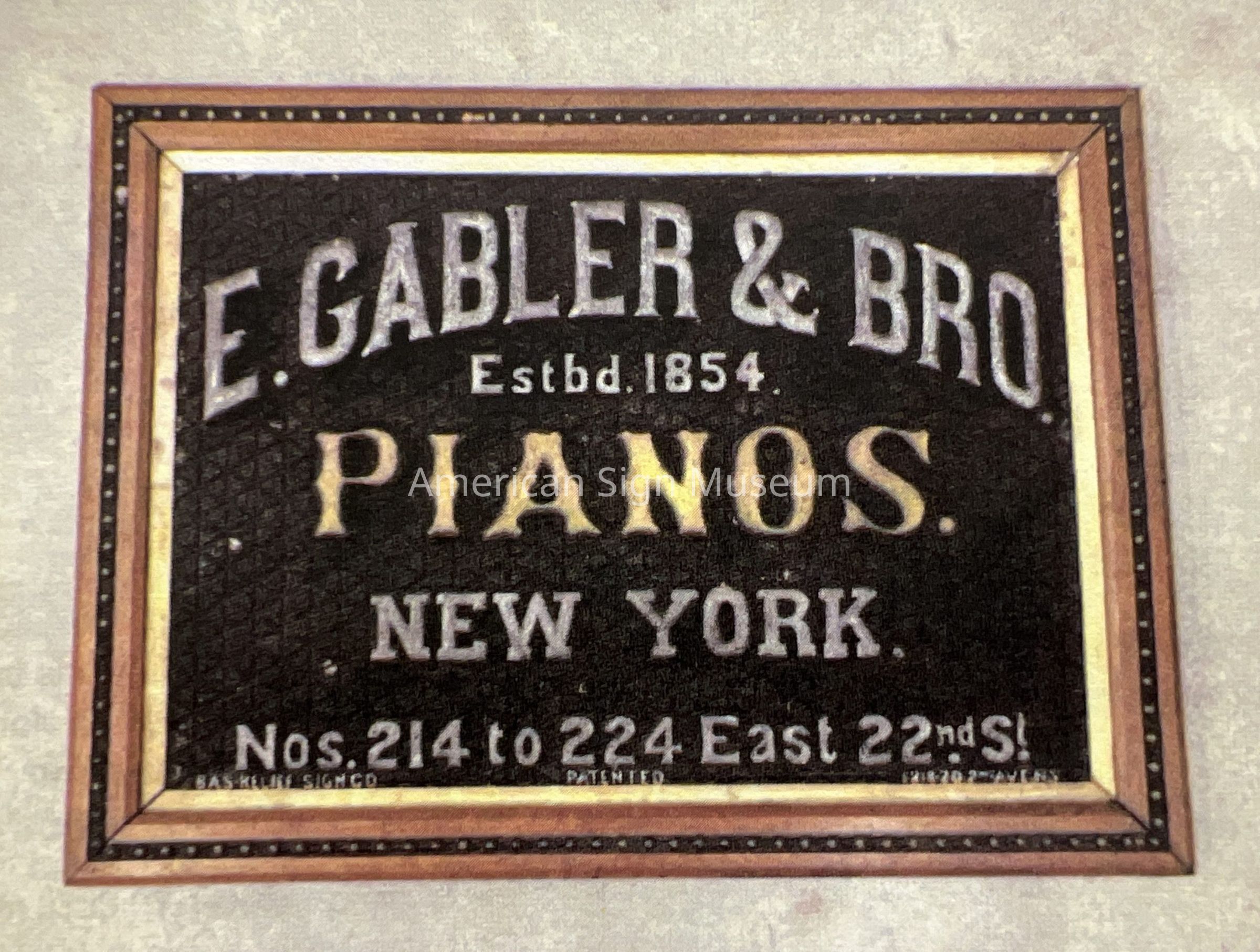 E. Gabler & Bro. Pianos Bas Relief SignEntry/Object ID