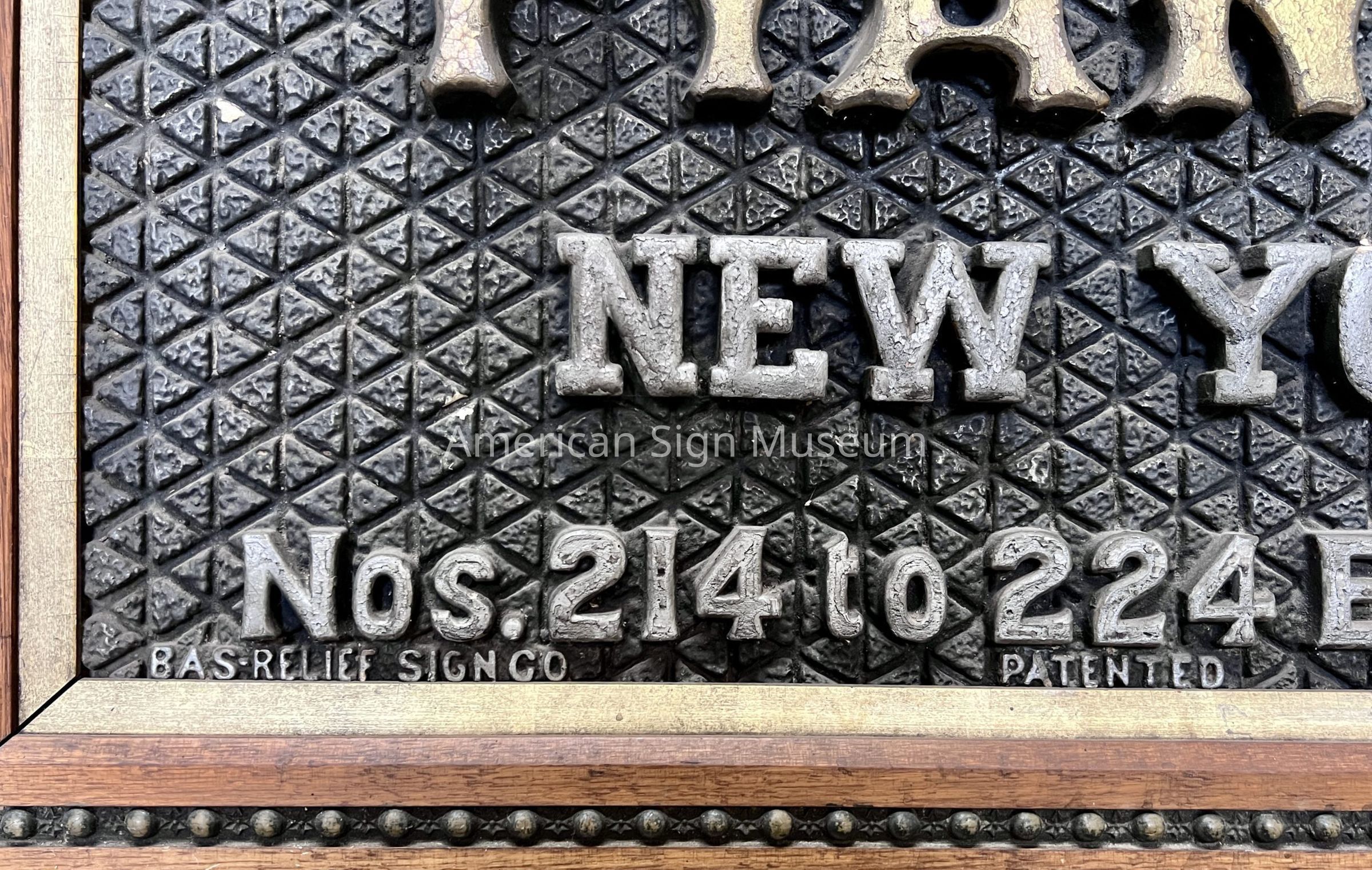 A plaster, metal & goldleaf sign made with the bas relief technique that would have advertised the E. Gabler & Bro. Piano company in New York, NY. It is enclosed with a double-layered wooden frame that is inlaid with metal details.Collection