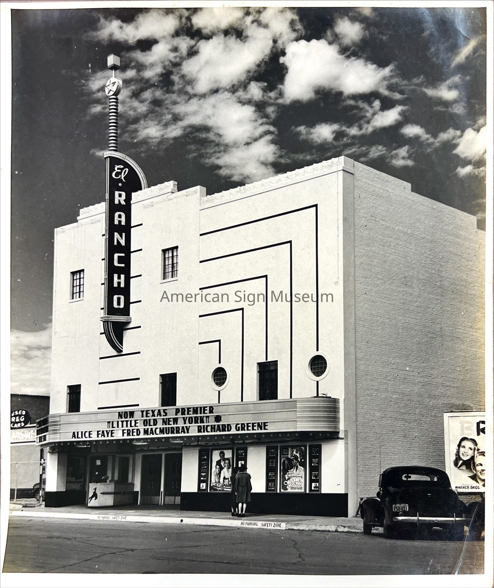 photograph of 1940-1950s neon theatre marquee with - El Rancho Theatre