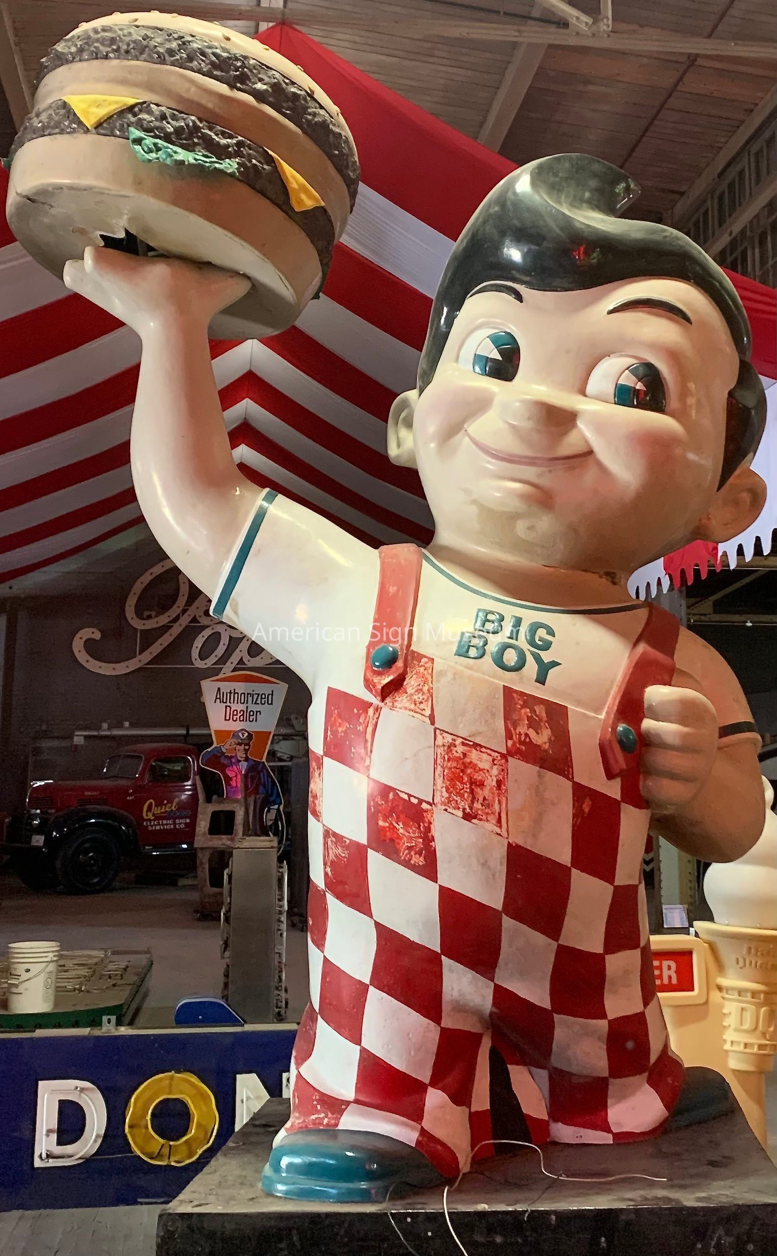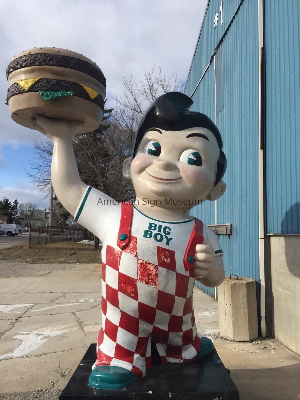 Originally starting with Bob’s Big Boy in California, Big Boy restaurants spread across the country in a complicated franchise system where different territories would use different names and Big Boy designs. Big Boys in the Michigan territory were owned by the Elias Brothers franchise. Elias Brothers Big Boys used what was known as the “West Coast” Big Boy design that originated in California that includes checkered overalls and dark hair. At one time, Elias Brothers ran all of the Big Boy franchise territories outside of those owned by Frisch’s (OH, KY, IN, and TN); however, Elias Brothers went bankrupt in 2000 leaving the remaining Big Boys in their system to form the Big Boy Restaurant Group.Collection