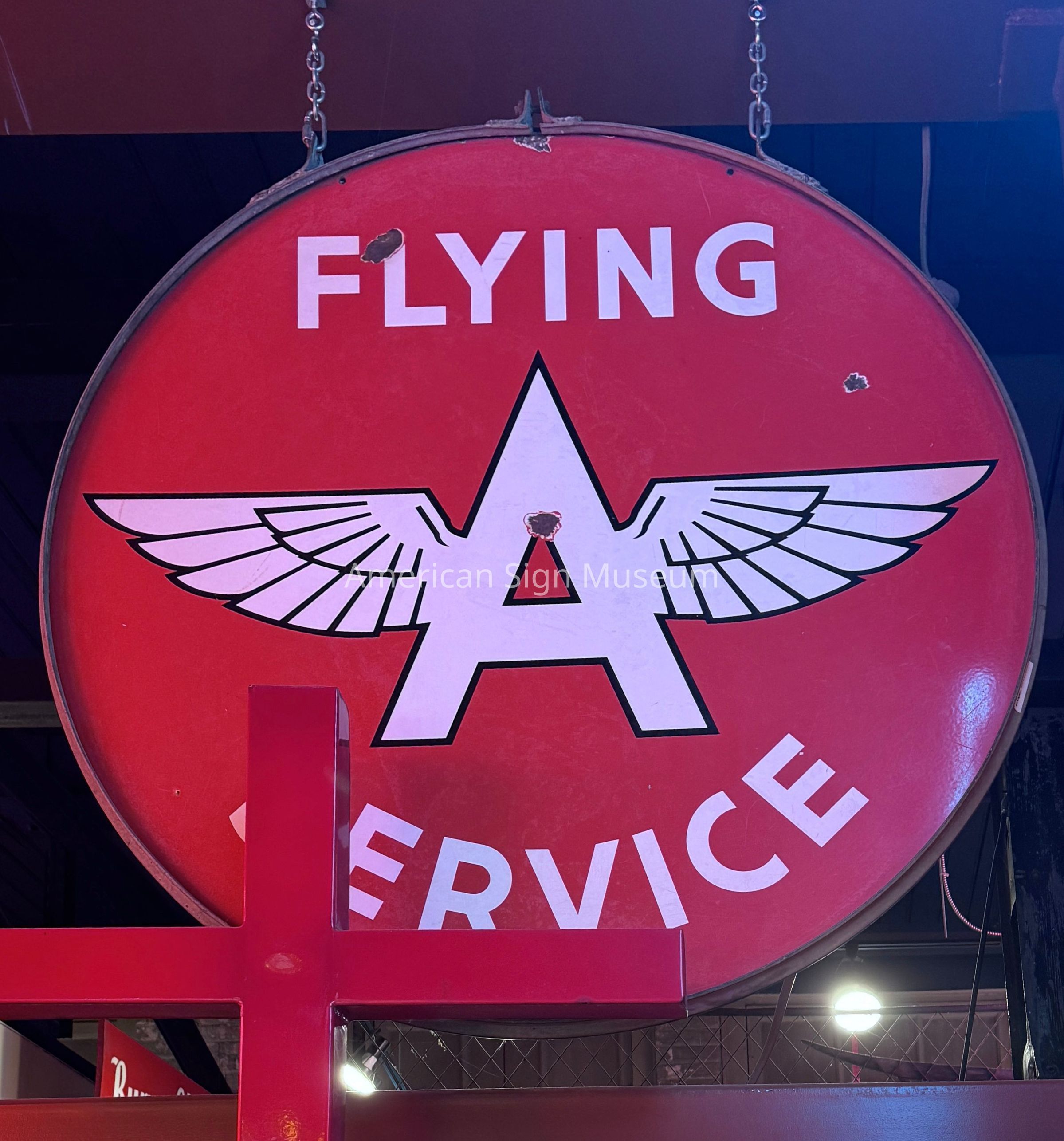 This is a double-faced porcelain enamel sign from the very collectible Flying A oil company.Collection