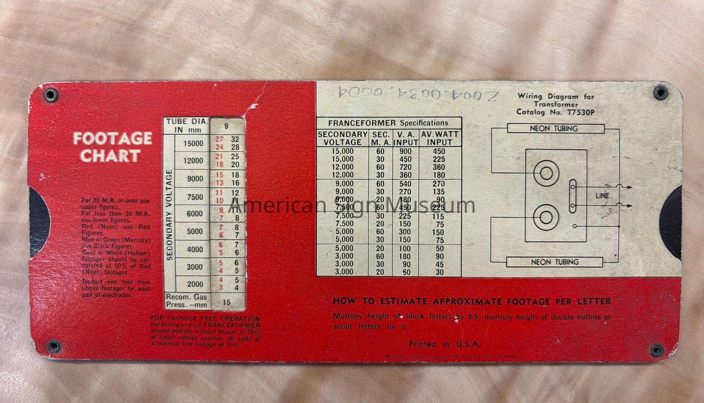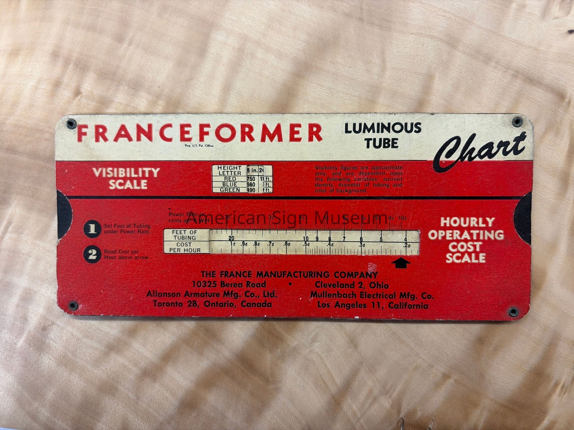 Franceformer Luminous Tube Chart visibility scale. Two-color chart with sliding sandwiched chart.Collection