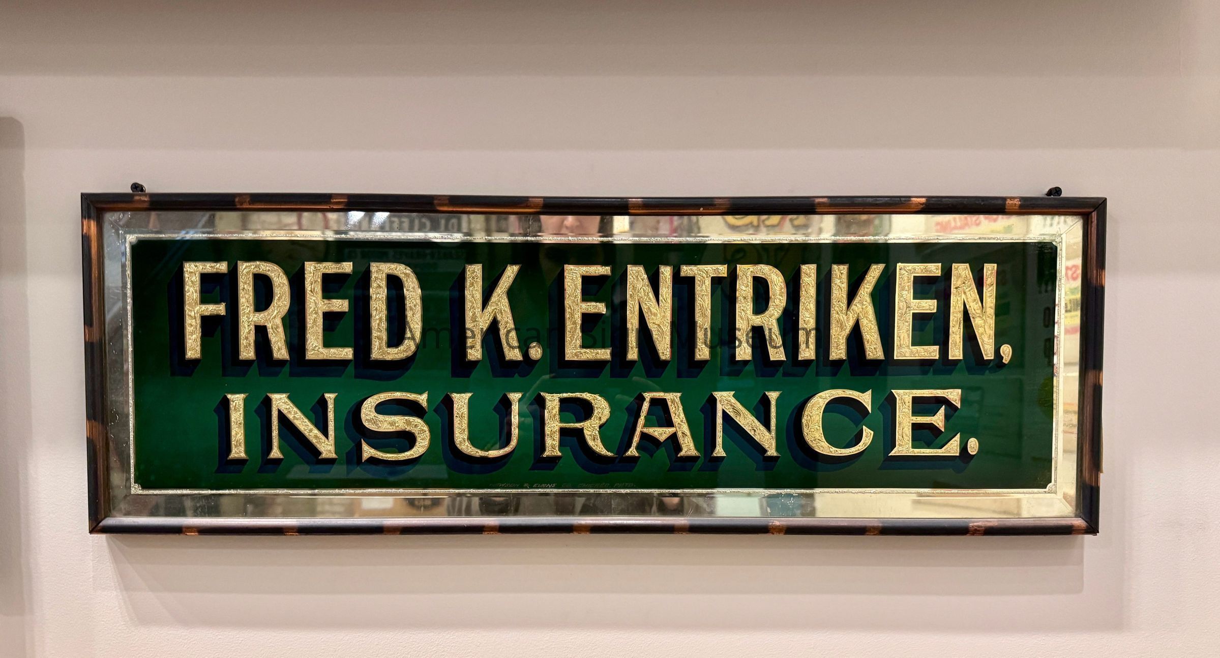 Fred K. Entriken Insurance Gold Leaf Glass SignEntry/Object ID