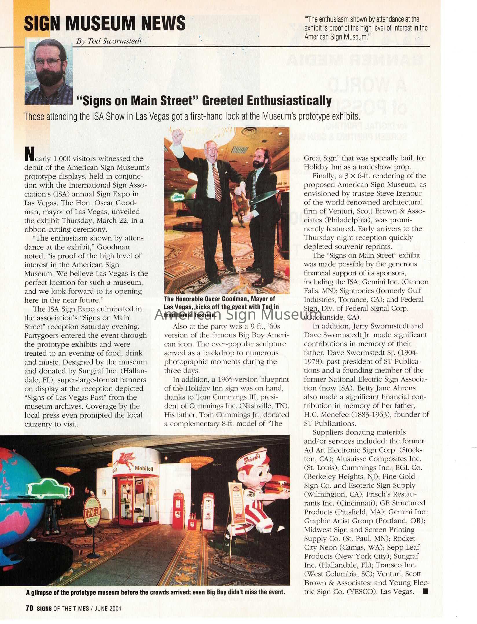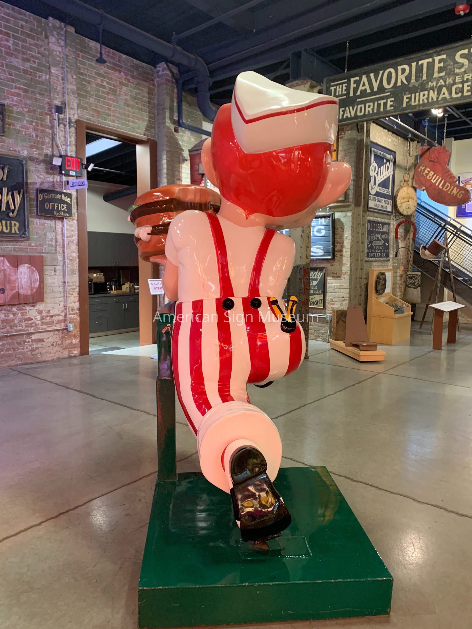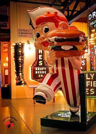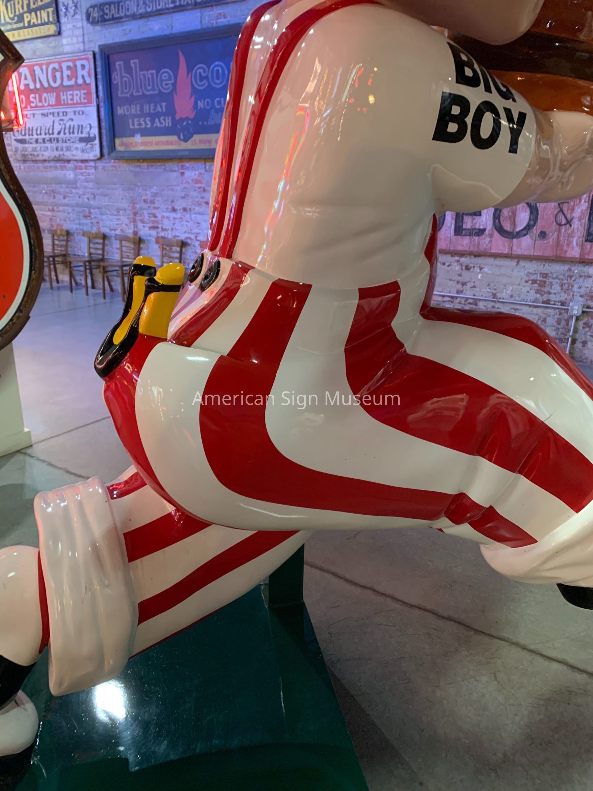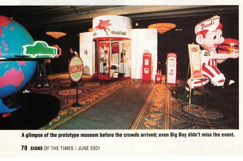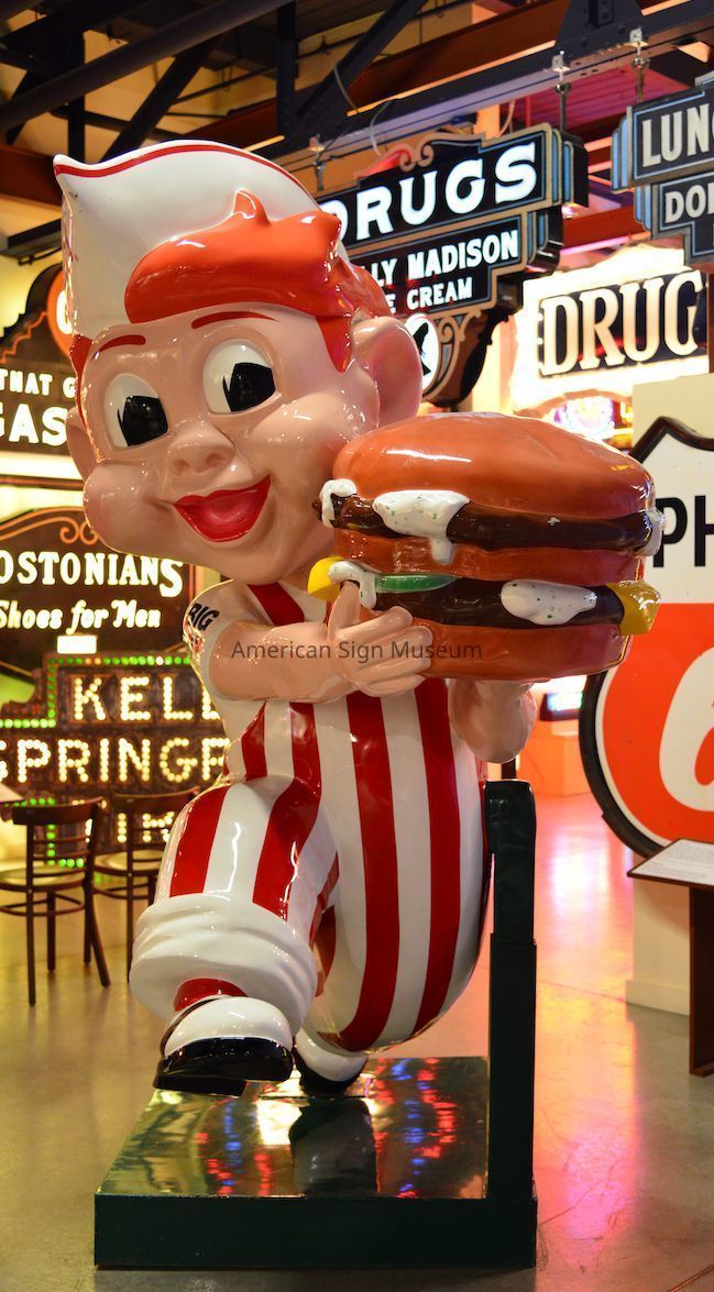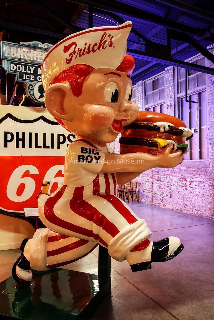 This Big Boy statue was a key figure in the Museum’s early days as it was one of the first signs to go on display in the proof of concept, a prototype museum in 2001 at the International Sign Association’s expo in Las Vegas. Big Boy was crated and shipped to Las Vegas as part of Prototype Museum "Signs on Main Street" display, unveiled on March 24, 2001 in conjunction with the ISA Sign Expo show.Collection