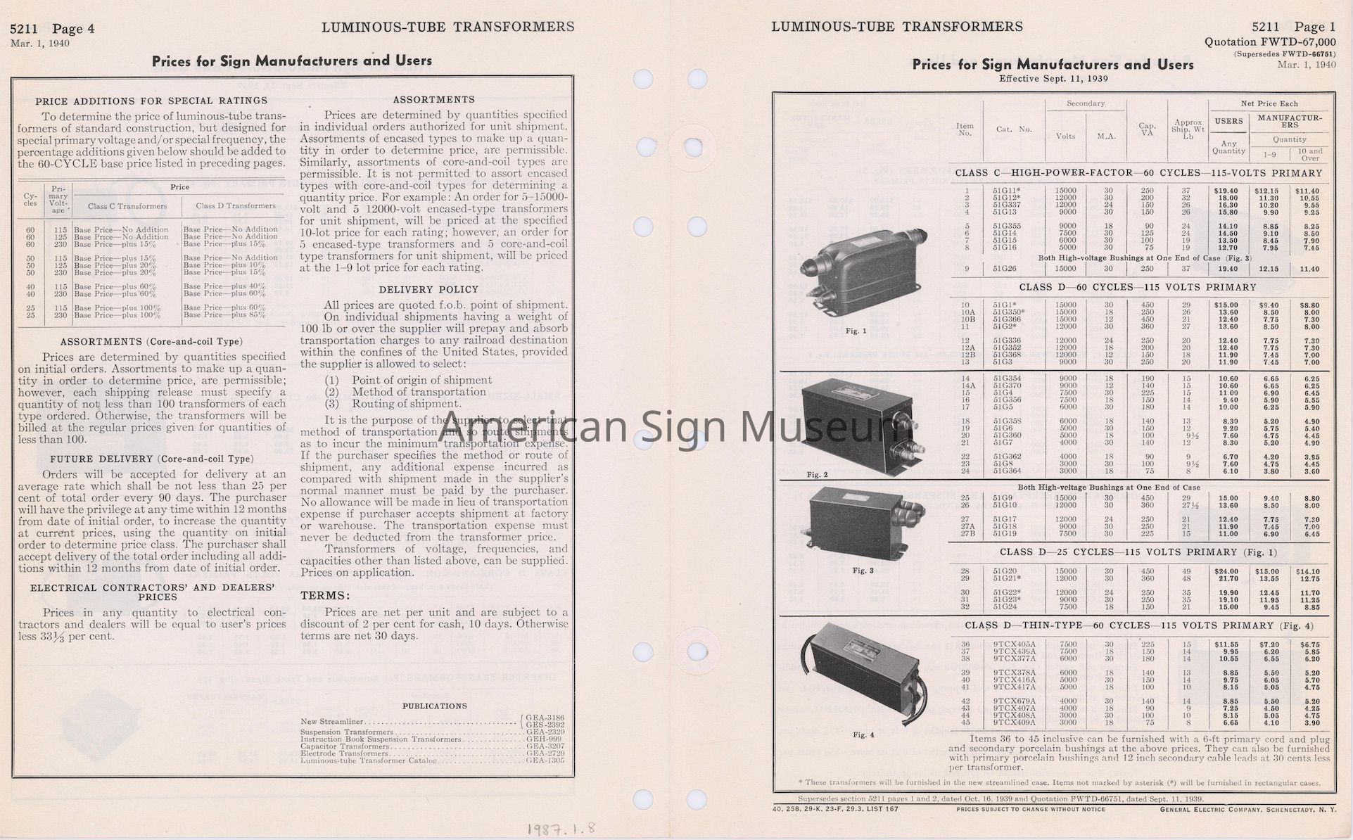 Illustrated, 4-sided folio price sheet for General Electric Company.Collection