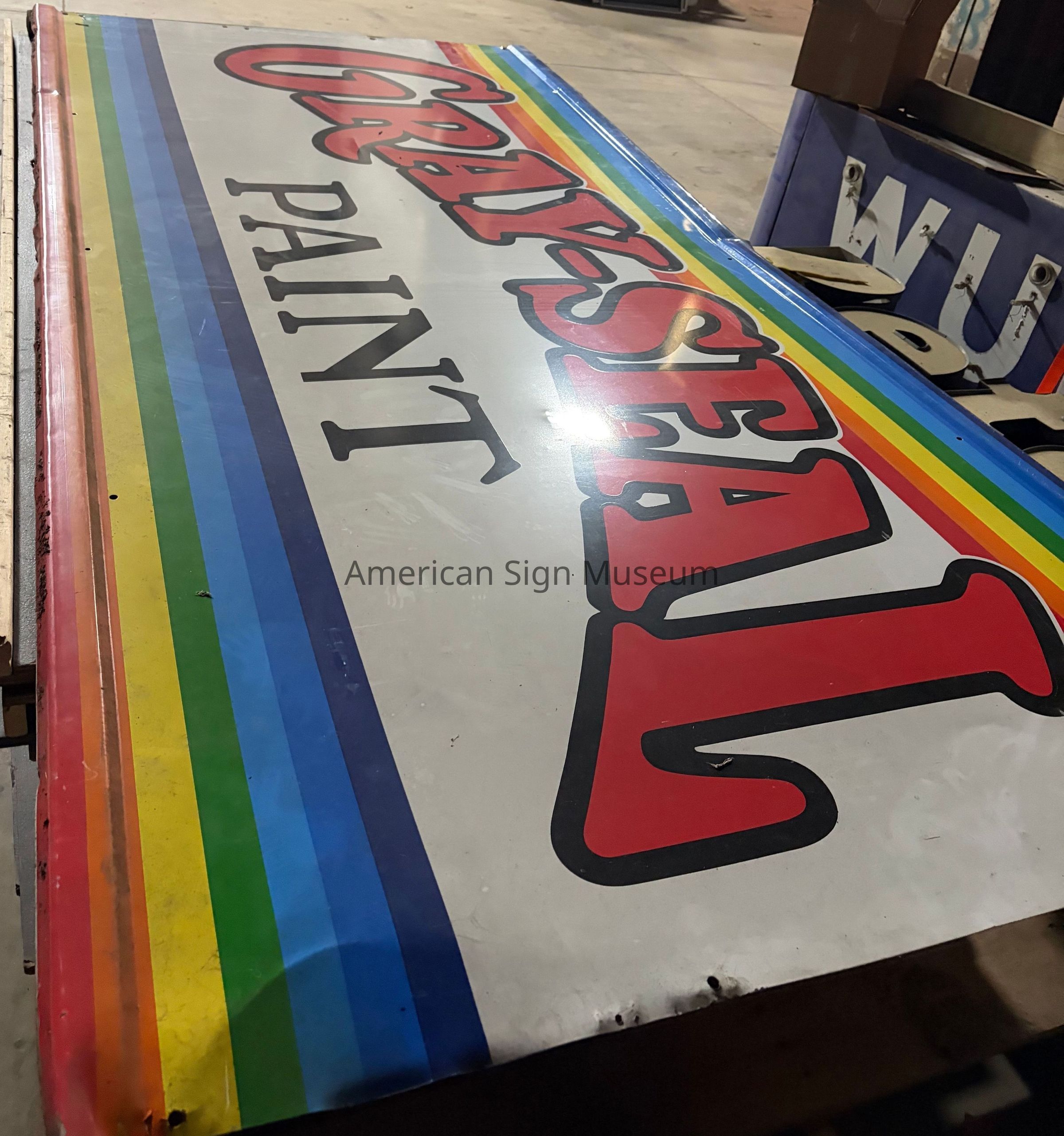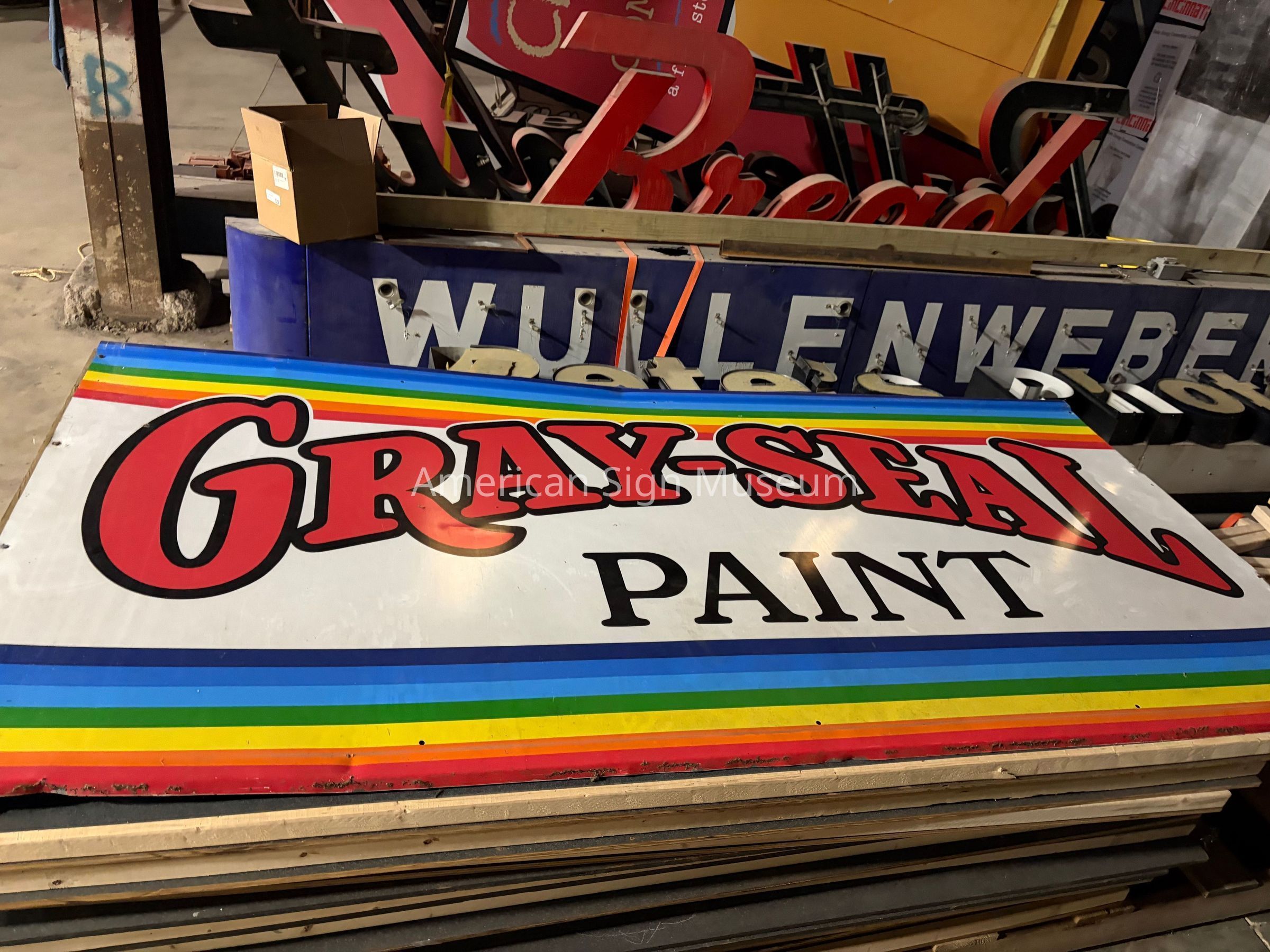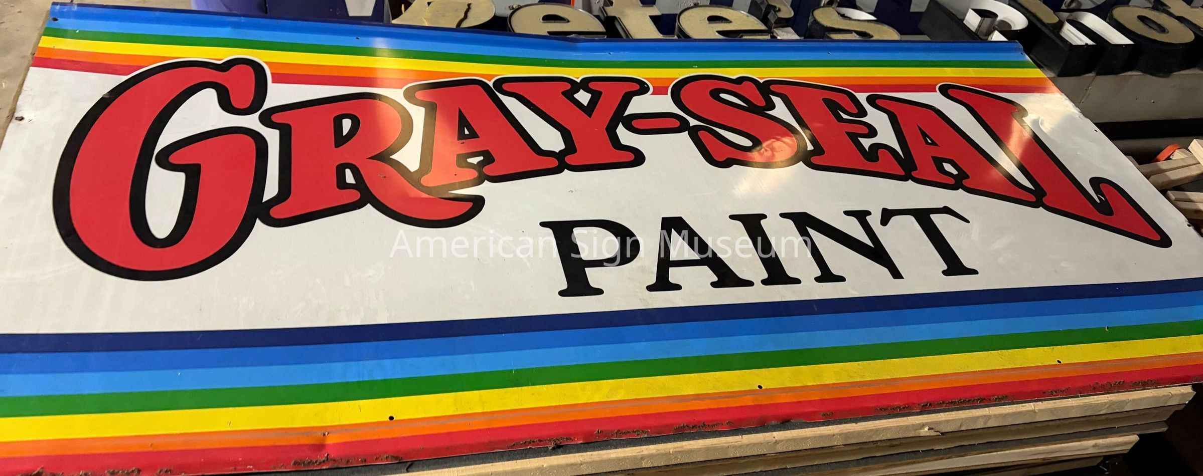 Screenprinted tin sign for Gray Seal PaintsCollection