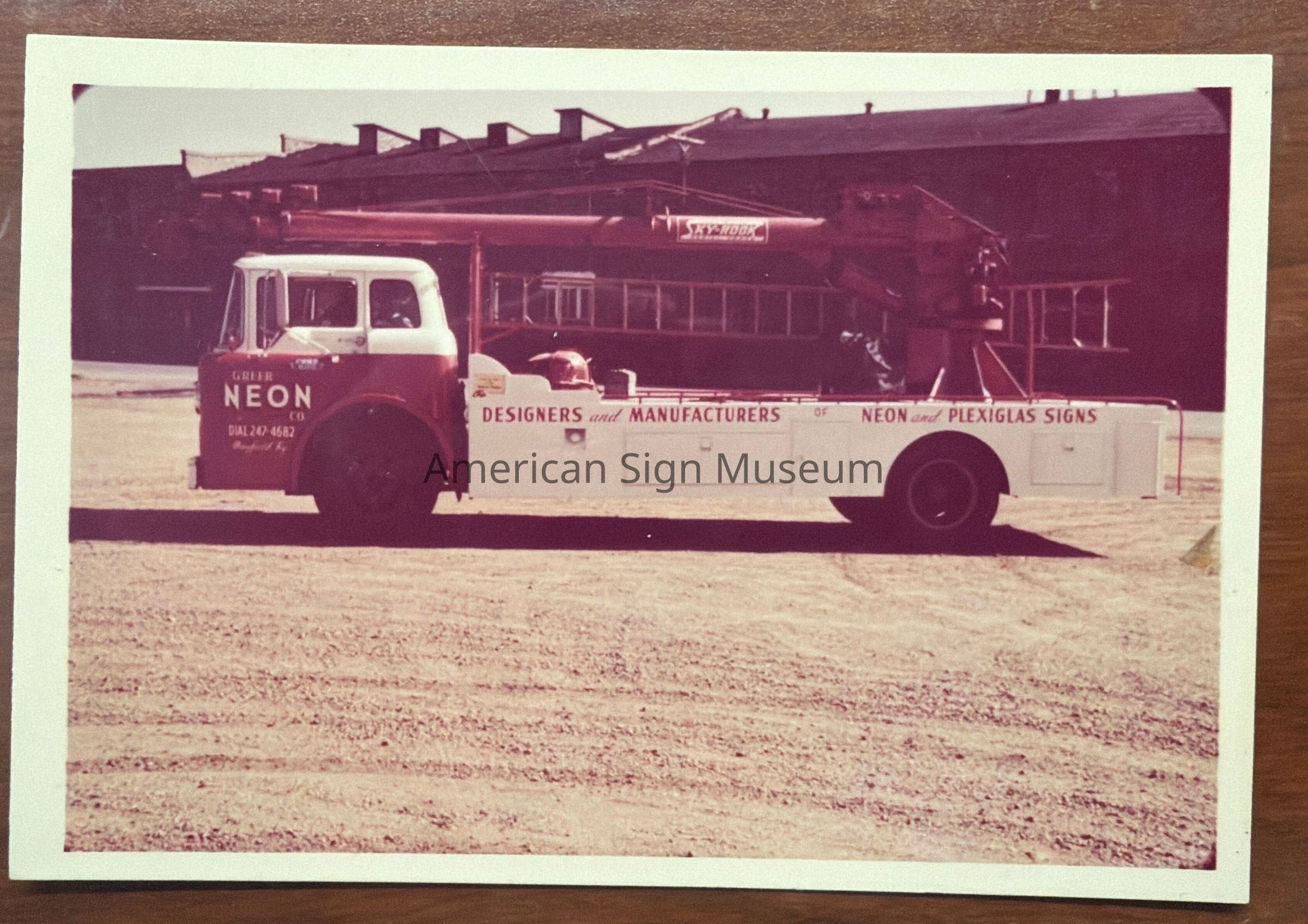 Color photograph of Greer Neon Company's Ladder Truck.Photograph Details