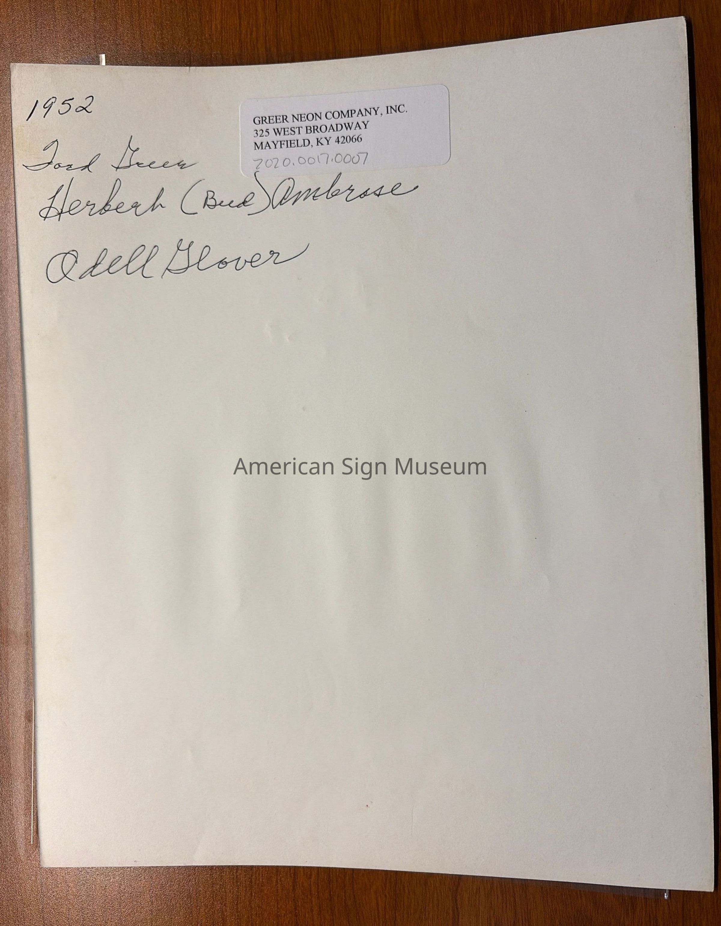 GREER NEON COMPANY, INC. ; 325 WEST BROADWAY; MAYFIELD, KY 42066Material/Technique