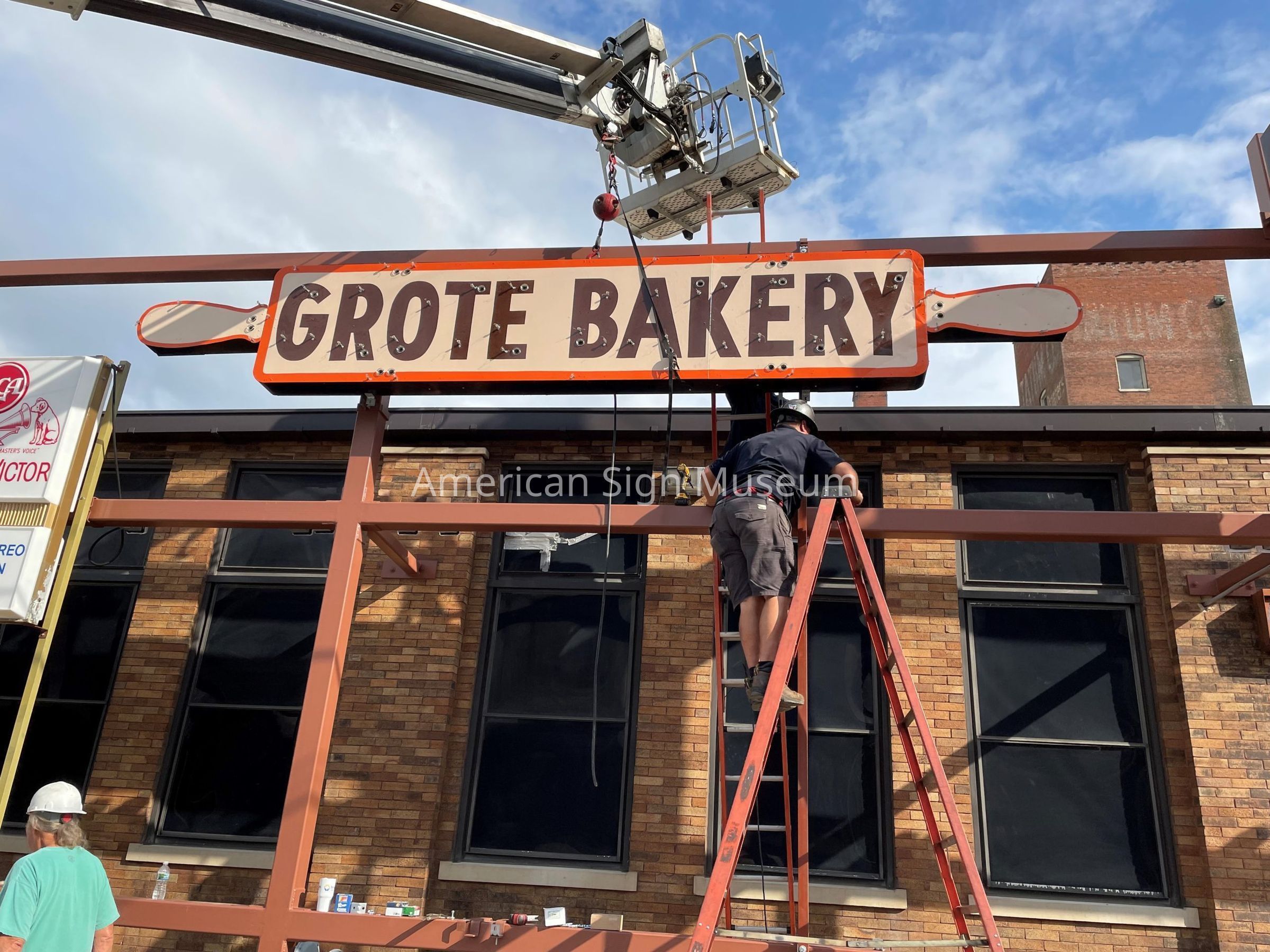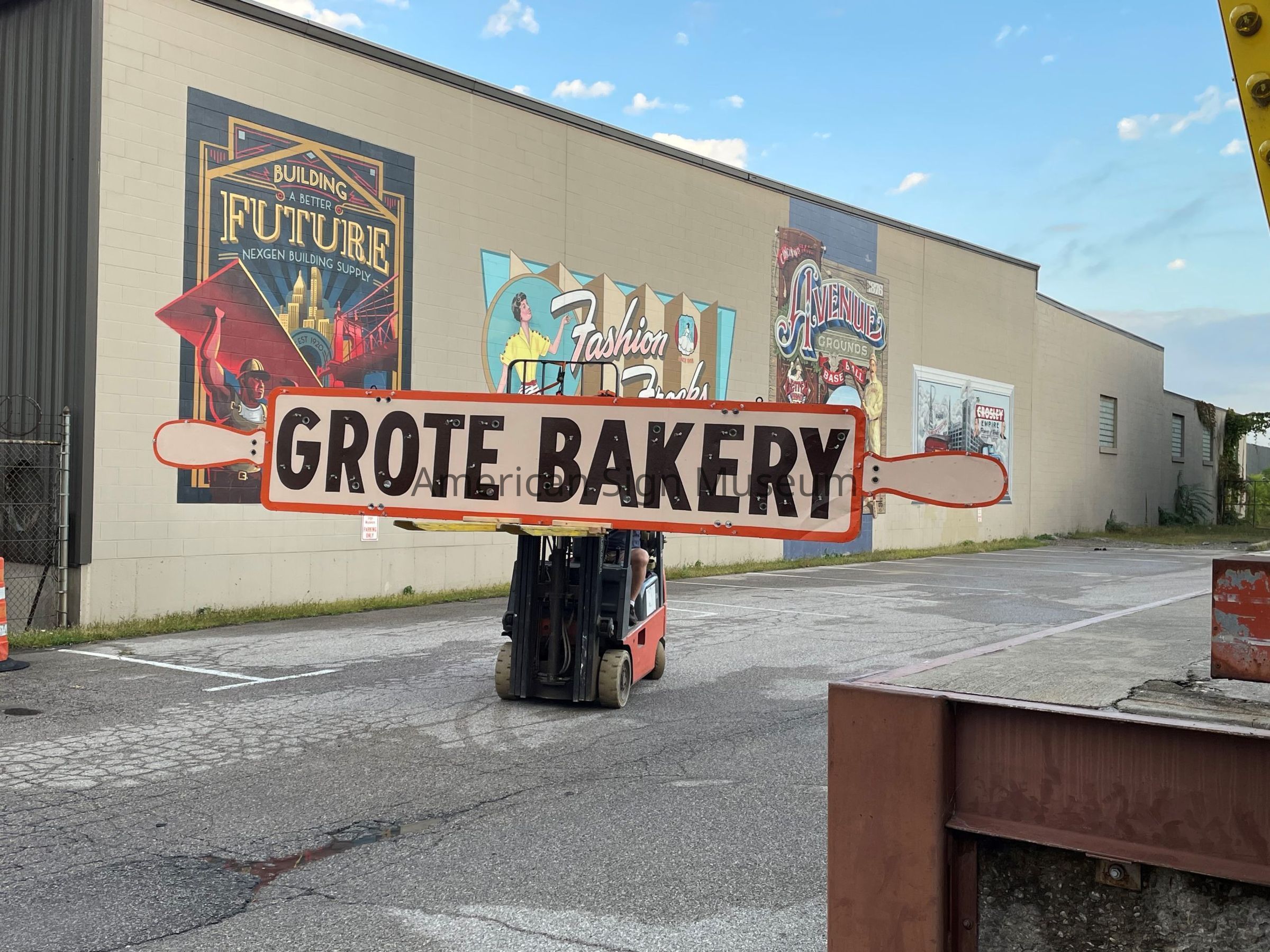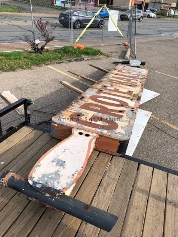 Shaped like a rolling pin, this sign sat atop Grote Bakery on Winton Road in Finneytown. When the bakery closed in the late 1990s after about 50 years of business, a new restaurant opened at the location. Rather than remove the original sign, the new tenants simply attached theirs to the front of the rolling pin. It’s not uncommon for new businesses to leave the former’s sign in place and cover over it. Recently, when that restaurant closed and was set for demolition, the rolling pin hidden beneath the restaurant’s sign was spotted. With some help from the community, the Museum acquired the Grote Bakery sign in 2023 and had it restored to its full glory the same year.Collection