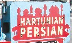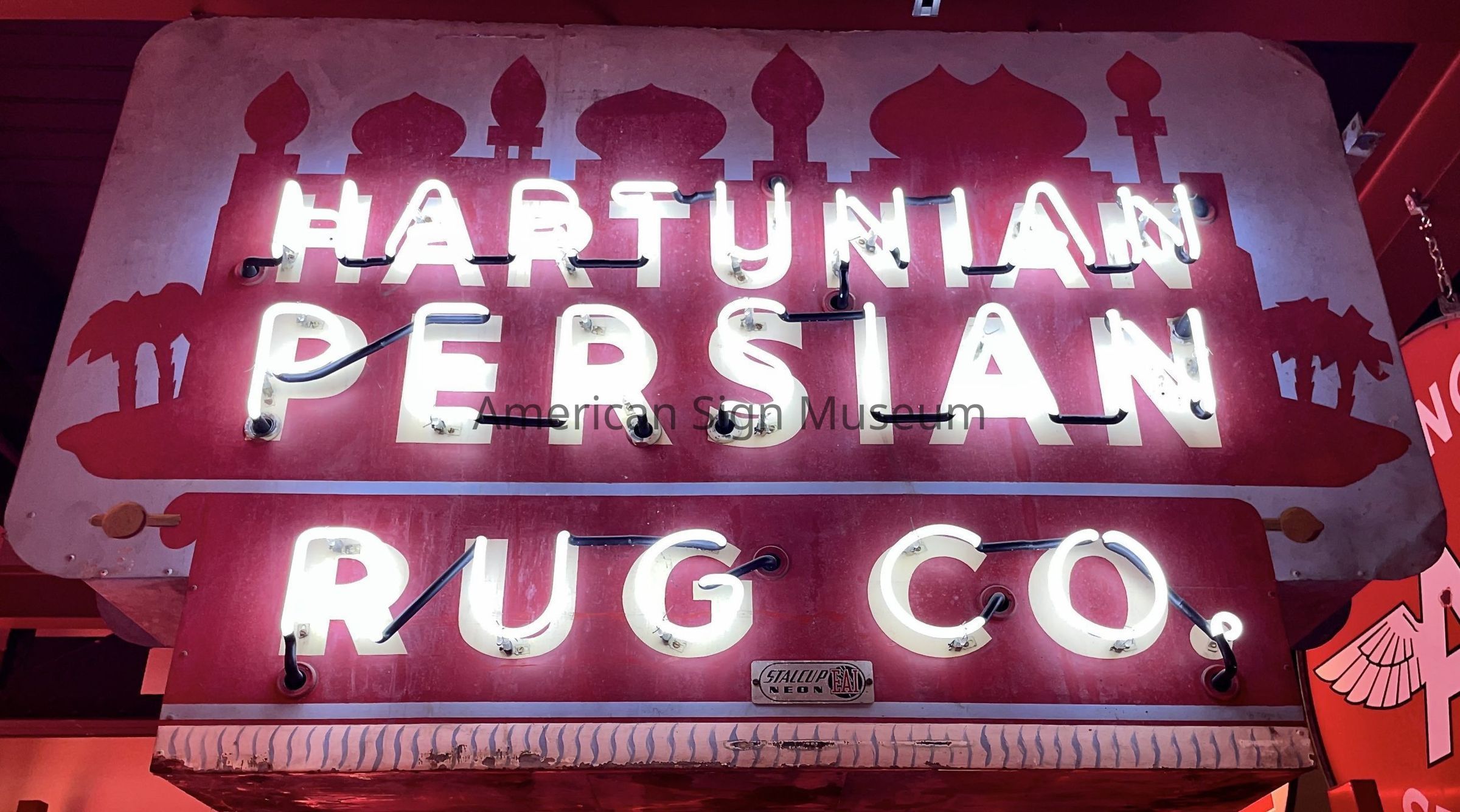 "Hartunian Persian Rug Company" is double-faced, painted sheetmetal neon sign.Collection