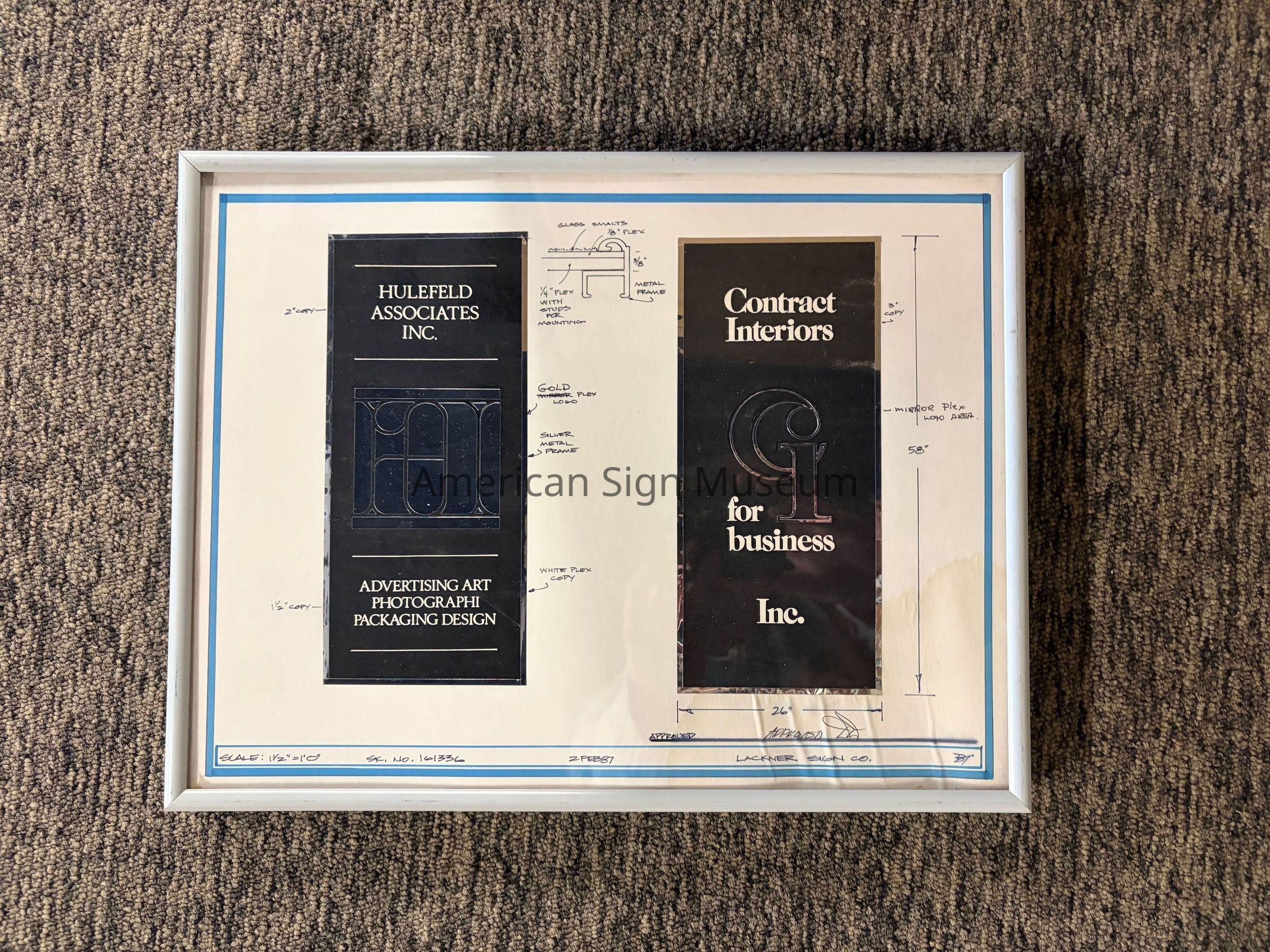 A sample of a fine metal sign for Hulefeld Associates Inc. by the Lackner Sign Co.Collection