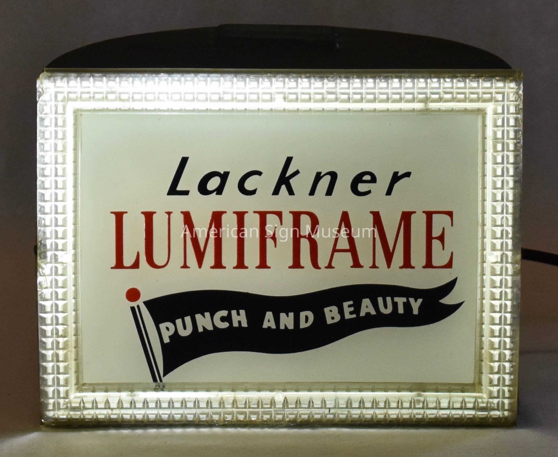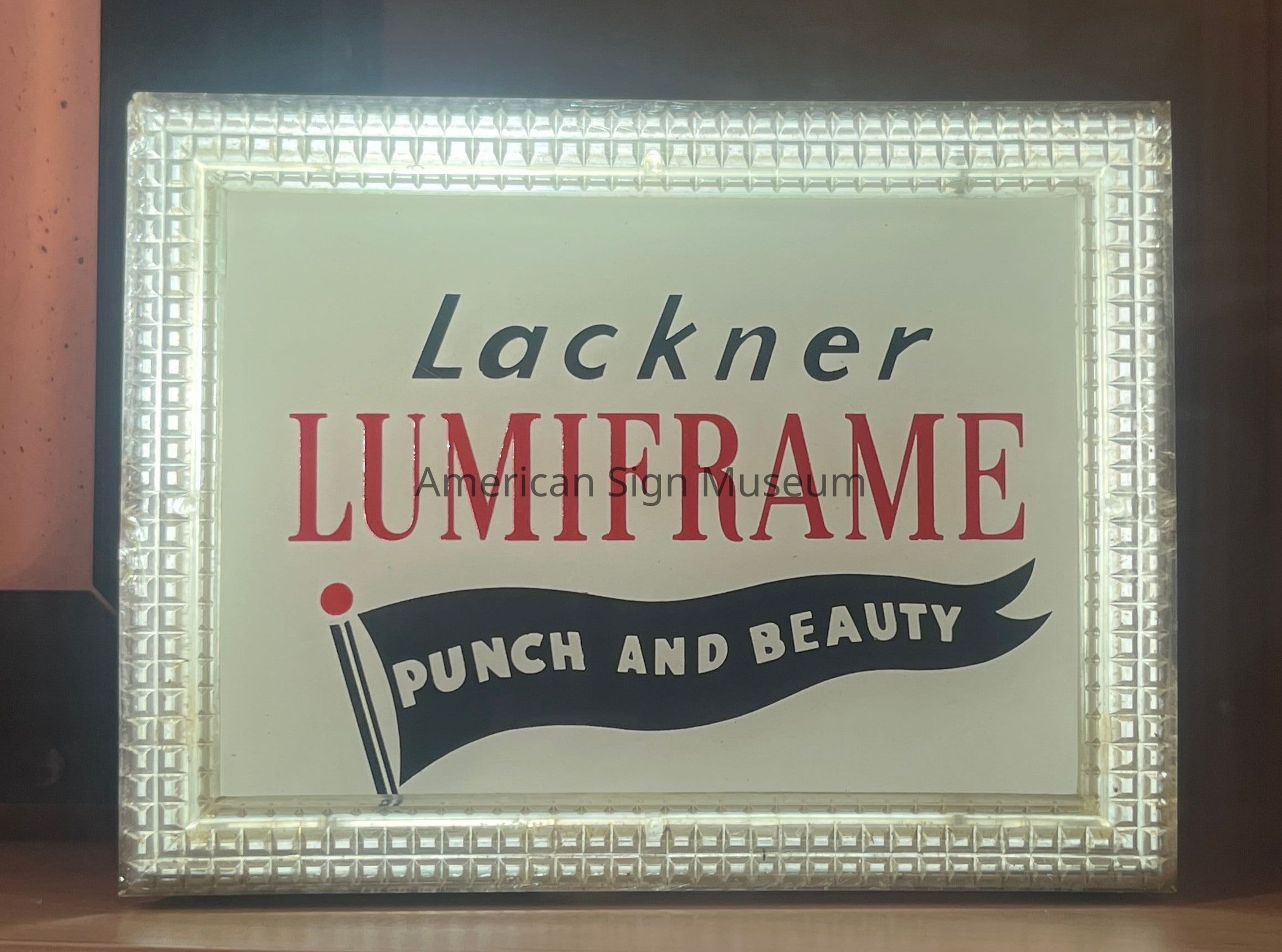 Salesman sample is a miniature version of the Lackner-patented Lumiframe sign frame.Collection