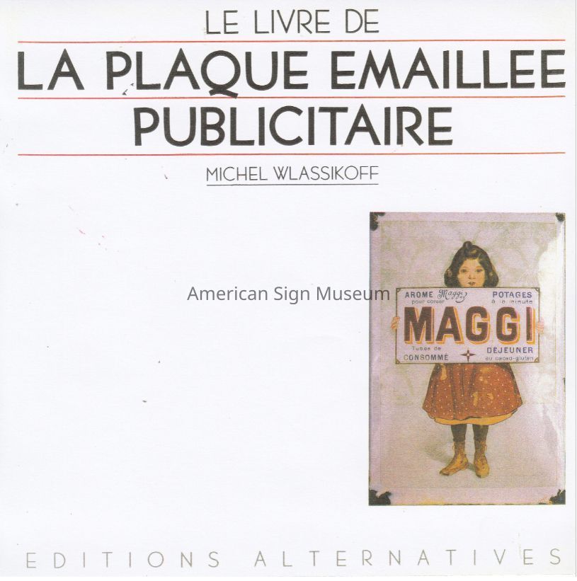 Le Livre de la Plaque Emaillee Publicitaire by Michel Wlassikoff. Published by Realisation Editions Alternatives, Paris, France: 1985. Please note this book is written in French.Hardbound; Color and B&W illustrations; 141 pagesDimensions