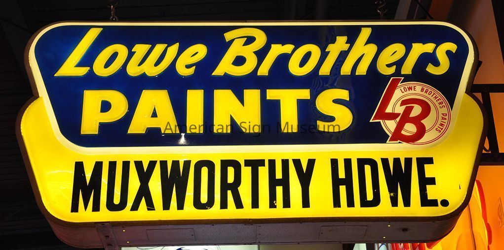 Lowe Brothers Paints vacuum-formed plastic, double-faced illuminated sign.Collection