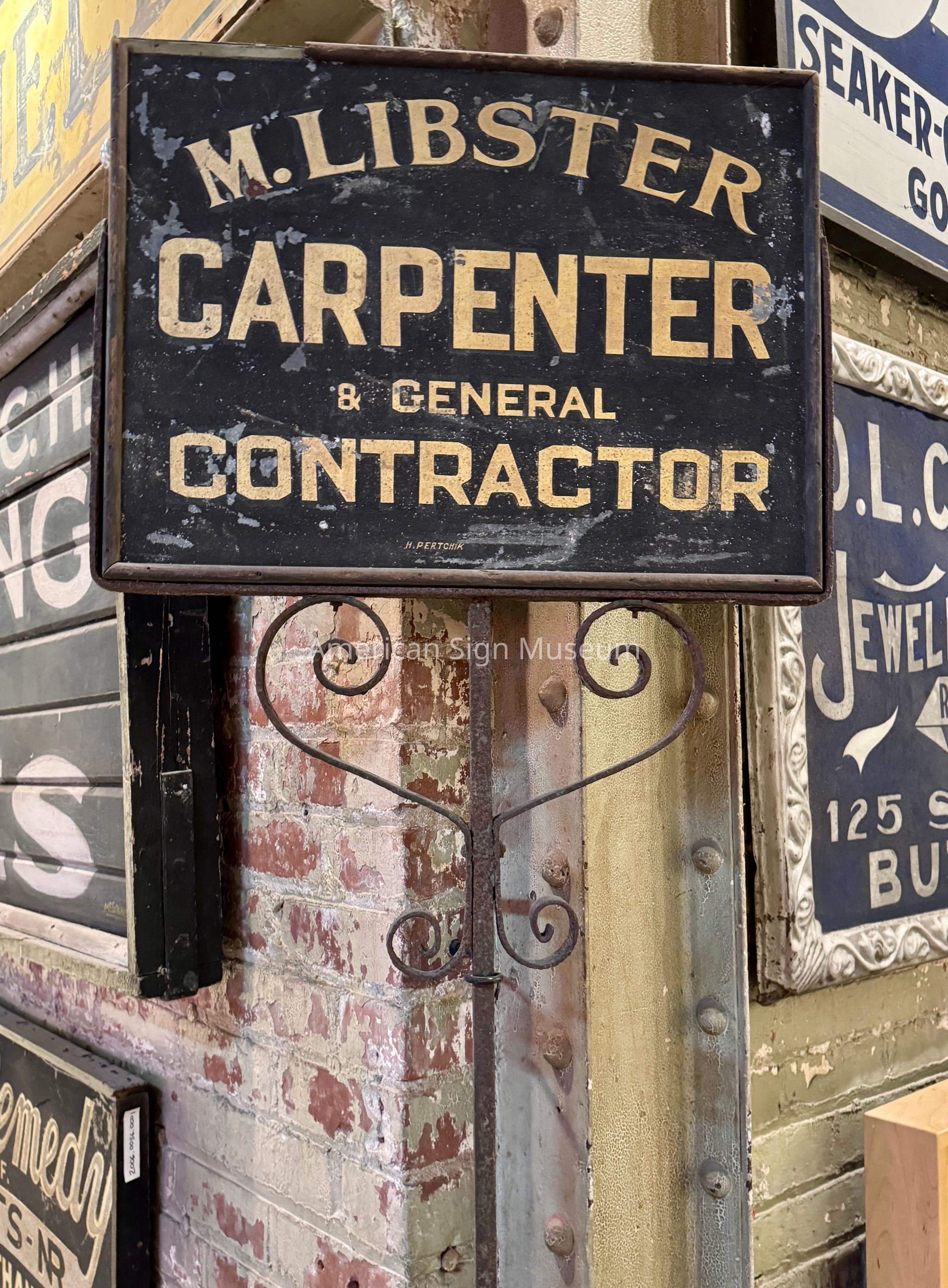 M. Libster Carpenter Standing Gilded Post SignDescription
